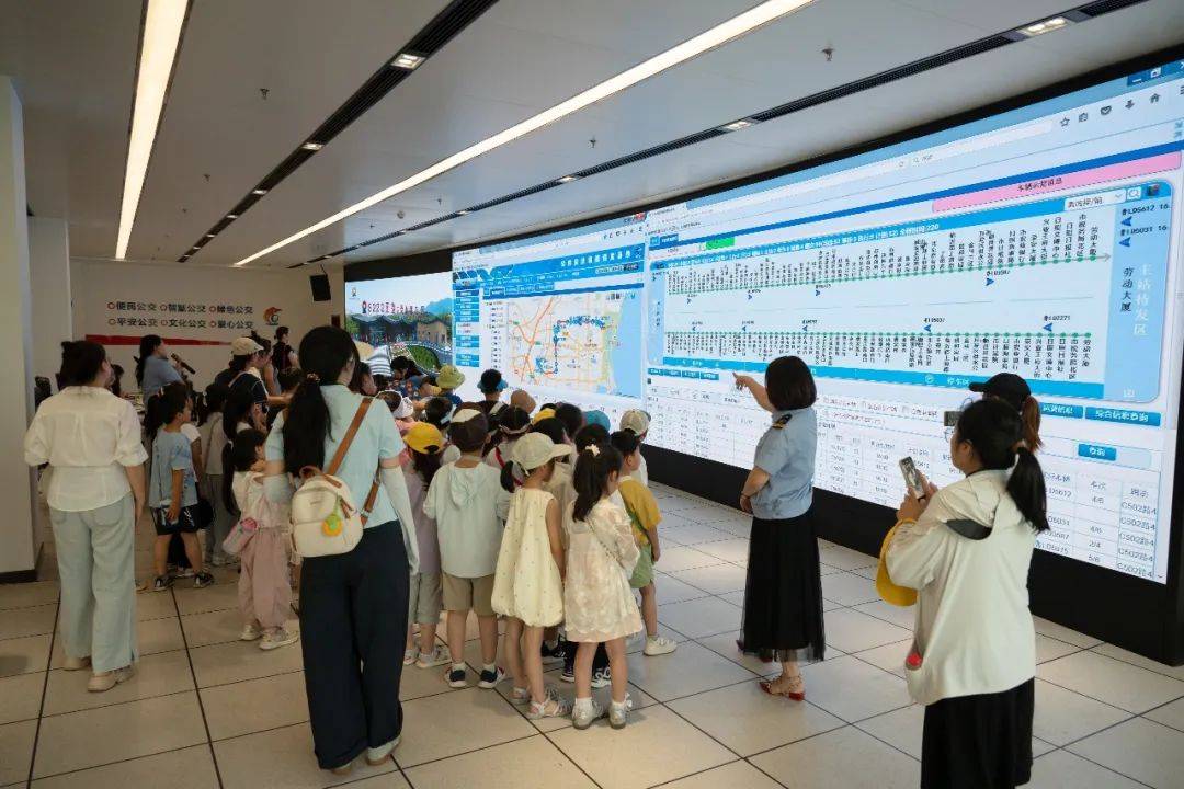活动中,为萌娃们播放交通安全教育警示视频,寓教于乐,萌娃们通过生动的画面和真实案例,真切感受到安全出行的重要性,更加认真学习公交安全乘车注意事项。随后,大家来到公交调度中心,讲解员详细介绍了公交车辆调度、运行监控等公交车有条不紊运行的“秘密”,带领萌娃们感受公交信息化给出行带来的便利。