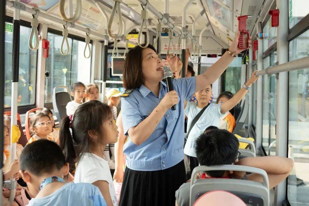 在“公交安全知识讲堂”上,通过讲解和亲身示范,让萌娃们了解如何正确上下车、如何正确使用车内应急设备、如何在紧急情况下进行自我保护等安全乘车知识。特别是安排萌娃坐到驾驶室,亲身体验驾驶环境,更直观地感受候车、乘车时公交车盲区,养成“不在车前跑、不在车后留、不在车边玩、不在路边耍”的良好习惯。