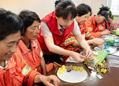 活动当天,十几位辛勤的环卫工人受邀踏入银行厅堂,在手工扇制作的创意互动中享受清凉,于茶香氤氲的轻松氛围里感受社会的关爱与尊重,让“送清凉”与“传心意”在方寸之间完美交融。银行工作人员精心筹备,提前备下了冰红茶、绿豆凉糕等消暑佳品,透亮的玻璃展柜内,空白扇面、缤纷颜料与干花材料整齐排列,静待创意的绽放。 刚结束晨间清扫的环卫工人们,带着一身疲惫与汗水步入厅堂,接过工作人员递来的湿毛巾,指尖的凉意瞬间驱散了夏日的燥热。“平时总觉得银行很严肃,没想到这么亲切。”环卫工张阿姨笑着擦汗,目光被桌上色彩斑斓的手工材料深深吸引。手工扇制作环节成为全场亮点,从细腻勾勒线条到巧妙粘贴花瓣,银行员工与环卫工人围坐一圈,手把手传授技艺,共话家常。有人在扇面上描绘清晨的街景,有人用彩色花瓣拼凑出对家人的爱意,还有人特意在扇柄系上红绳,寓意“挥动有力,生活有劲”。大家高举亲手制作的扇子,互相展示,扇动间带起的风里,混合着茶香与欢声笑语,格外清新宜人。 茶歇之余,一场“接地气”的反诈知识宣讲悄然展开。客户经理小李以近期发生的真实案例为引,生动讲解了“冒充客服退款”“低价购物诈骗”等常见骗局,并针对老年人易受骗的场景进行了特别提醒。“以前总觉得骗子不会找我们,今天才知道他们专挑不懂的下手。”环卫工王师傅边听边用手机记下银行的反诈咨询电话,以防不时之需。