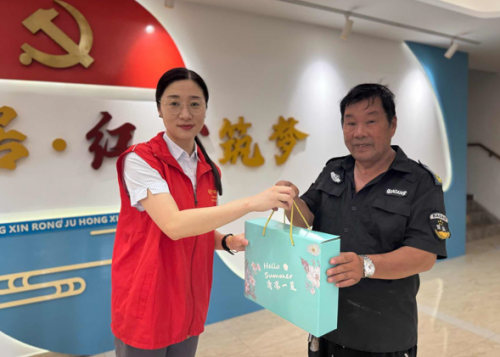 盛夏酷暑,烈日当空,高温天气连绵不绝,给户外劳动者及社区居民带来了极大的挑战。民泰银行舟山分行营业部党支部积极响应“金融为民”的号召,携手红茅山社区,共同开展了一场温馨而富有意义的“夏日送清凉”主题党日活动。此次活动,不仅为在高温下辛勤工作的人们送去了丝丝凉意与关怀,更以实际行动展现了基层党组织的责任与担当。 活动现场,民泰银行舟山分行营业部的党员们与社区工作者并肩作战,迅速组建了一支充满活力的“清凉服务队”。他们手提精心准备的定制礼包,穿梭在社区的每一个角落,将一份份满载爱心的清凉送到了户外劳动者的手中。礼包内,洗护用品、藿香正气水、冰袖等防暑物资应有尽有,同时还特别附上了“金融安全手册”,既实用又具有教育意义。环卫工人张大姐接过礼包时,脸上洋溢着感激的笑容,她感慨地说:“银行和社区想得真是太周到了,让我们在炎炎夏日感受到了不一样的清凉与温暖!”