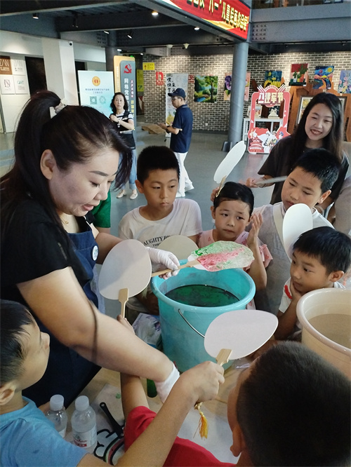 开幕式结束后,嘉宾与家长们漫步展区,在孩子们的画作中感受生活的点滴美好。这里没有刻意的宏大叙事,却处处透着童真视角下的安稳与惬意,让人在轻松的氛围中,自然联想到这份美好的来之不易。现场的漆扇制作体验区更热闹非凡,小朋友们在老师的指导下,制作出了一把把色彩绚烂的纸扇,用小小的创作记录下此刻的心情。”孩子说要把自己制作的扇子送给爷爷,因为爷爷也是军人,这是他能想到的最特别的‘八一’礼物。”一位家长笑着说。