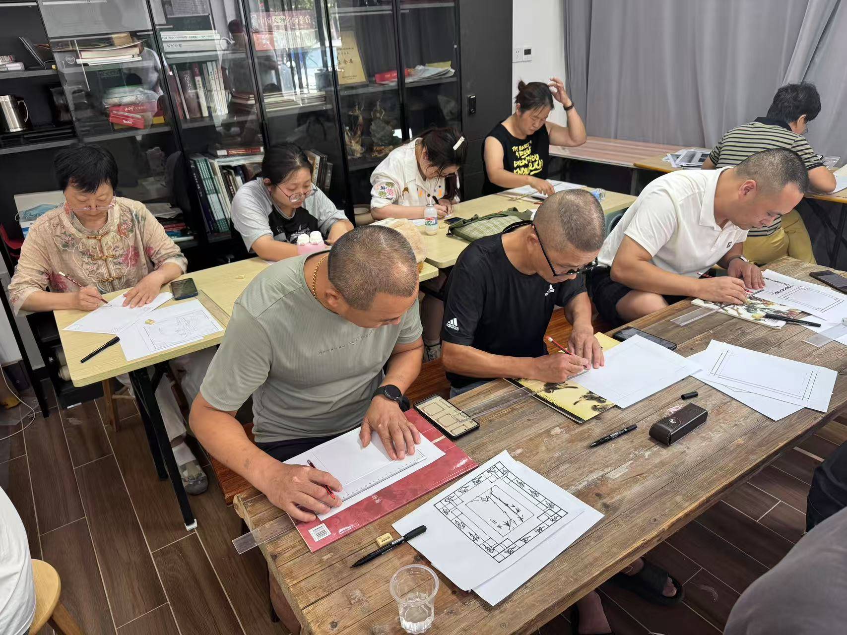 名师授课,理论与实践并重 国家级乡村工匠名师、浙江省非遗泥水画传承人王舍安担任主讲导师。凭借数十年的技艺积淀和丰富教学经验,王舍安为学员系统讲解了泥水画的古法绘制、根雕的选材与刀法、泥塑的造型艺术等核心技艺,并通过现场示范和手把手指导,帮助学员快速掌握要领。这一期特别邀请民俗专家唐桓臻教授武义泥水画,以及由王舍安女婿南京大学邱吉助理教授讲授工艺美术的相关知识。培训中,学员们或专注聆听理论,或精心创作作品,古老技艺在尺笔间焕发新生。