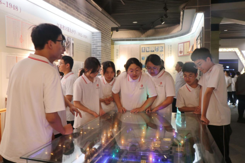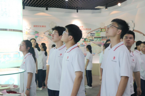 在校史馆内,同学们认真观看了图片、文字、实物等珍贵资料,详细了解了学校的发展历程和办学成就。 在院士校友展区,陈鉴远、邵峰、王怀民三位院士的求学经历和科研成就引起了同学们的浓厚兴趣。高一2部7班刘朗凝视着校友荣誉墙,难掩激动:“前辈们以星火之光照亮国家前路,我也要把‘以富强祖国为己任,为中华崛起而读书’的校训写进青春,用勤奋与卓越续写新的篇章。”校团委书记苏晶晶寄语:“愿同学们在校史的浩瀚星河中锚定家国坐标,于精神火炬的接力中汲取不竭动力,让个人梦想与民族复兴同频共振。”
