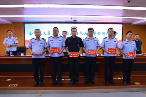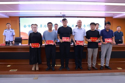 为大力弘扬社会正气,表彰先进典型,激励全市见义勇为人员和公安机关辅警队伍继续担当作为、无私奉献。8月14日上午,句容市召开全市见义勇为人员暨公安机关辅警专项奖励会。句容市公安局党委副书记、政委卞为民,市见义勇为基金会临时党支部书记经军,副理事长兼秘书长陈学东出席会议。会议由市公安局党委委员、政工室主任余伟主持。