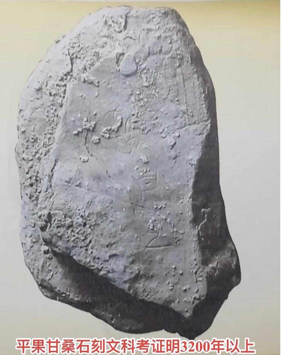 自从2022年9月8日,中央广播电视总台播出专题片《甘桑石刻文之谜》。节目播出后,二十多家媒体进行了转载报道。深藏于广西平果的甘桑石刻文,由此成为考古学界关注的焦点。 张虎才教授(中国科学院“百年计划”入选专家、高原湖泊生态与环境变化团队首席科学家、作为高端引进人才和科技领军人才引入云南大学等3人于2021年7月6日到平果对甘桑石刻文样品取样为广西免费送往Beta专业实验室进行年代测试。2021年10月份检测结果:甘桑石刻文成字年龄不小于距今3000-3200年。