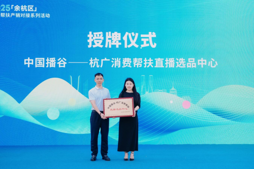 “中国播谷-杭广消费帮扶直播中心”和“中国播谷-杭广消费帮扶直播选品中心”授牌环节成为活动亮点,两大中心的正式揭牌,标志着苍溪与余杭的协作正式迈入“线上+线下融合的新阶段,也为苍溪等广元特色产品搭建“数字化销售新渠道”,通过专业选品与直播运营,既能帮助苍溪及广元优质产品精准触达余杭及周边消费市场,也能让消费者更便捷地购买到地道特色好物。