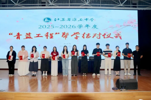 为加强师资队伍建设,发挥骨干教师示范引领作用,助力青年教师专业成长,9月9日晚,淮安中学在丽泽堂报告厅举行2025-2026学年度“青蓝工程”帮学结对仪式。校党委书记、校长于敏等领导出席活动。 仪式伊始,教务处副主任孟国君宣读了上一学年度帮学结对优秀指导教师和优秀青年教师名单,共有12对结对师徒被评为优秀教师。教务处主任丁军、副主任郭琪分别为优秀指导教师和优秀青年教师颁发荣誉证书。优秀青年教师向指导教师献花,表达感激之情。