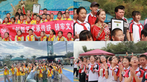 特别令人振奋的是在89米高空无保护状态下完成103天生存挑战的优秀青年演员古丽皮娅・吉力力,也亲临现场为学生们带来了一段精彩的达瓦孜表演。她以轻盈稳健的动作、从容自信的演绎,生动展现这一民族艺术瑰宝的时代风采。通过分享挑战过程中克服高温、暴雨等极端天气的亲身经历,孩子们深切感受到新时代青年坚守执着的信念、勇于突破的精神与团结协作的意识,深刻理解“台上一分钟,台下十年功”的奋斗内涵。