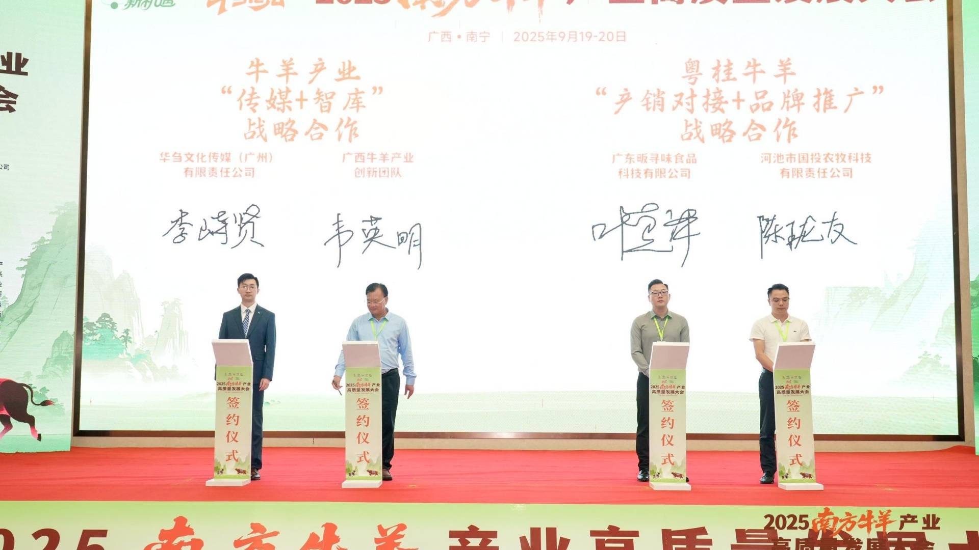 会议涌现多项重要成果:南方十省专家共同发布《南方牛羊产业高质量发展十大倡议》,倡导构建“产学研媒”深度融合机制;跨省发起成立“南方牛人俱乐部”,强化基层互动与实战经验共享;广西牛羊产业创新团队与华刍文化传媒达成“传媒+智库”战略合作,河池市国投农牧与广东畈寻味公司签订粤桂产销对接与品牌推广协议,推动产业链上下游紧密衔接。