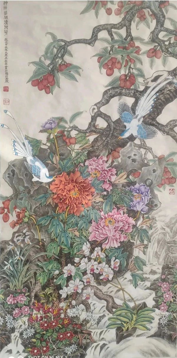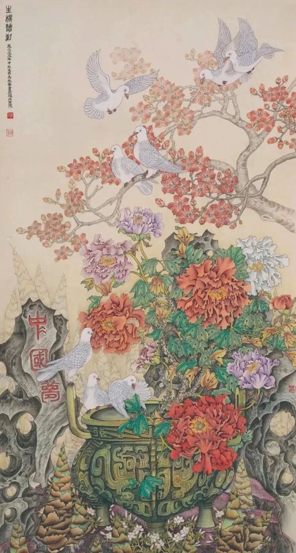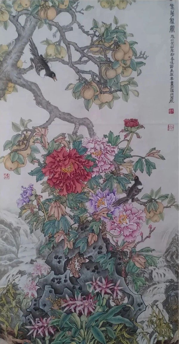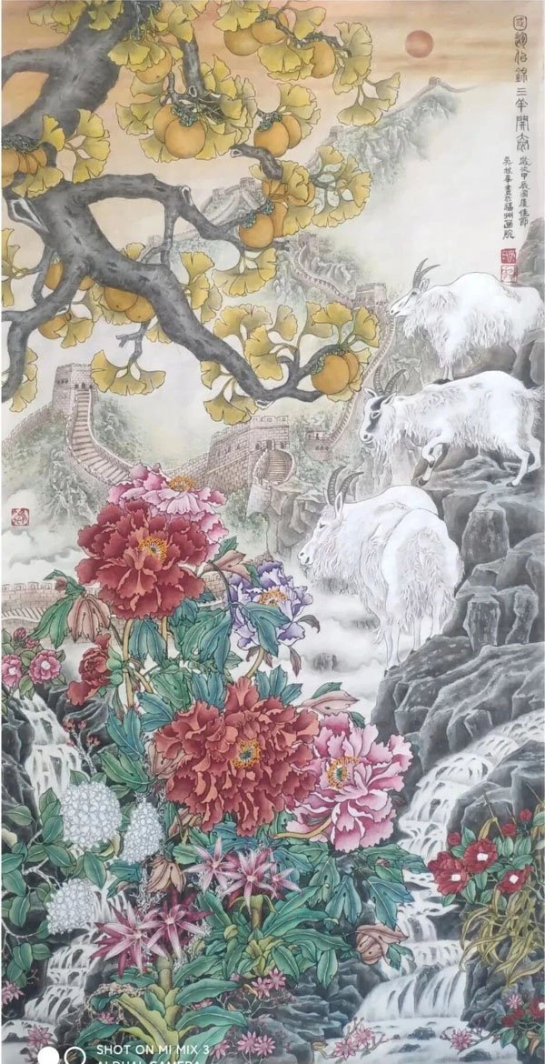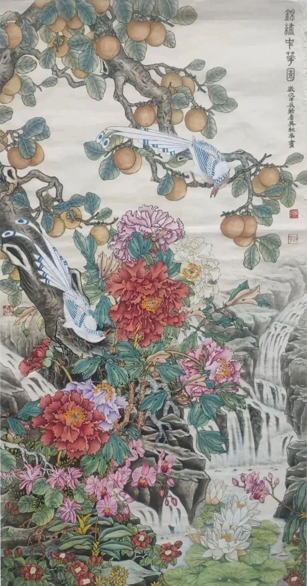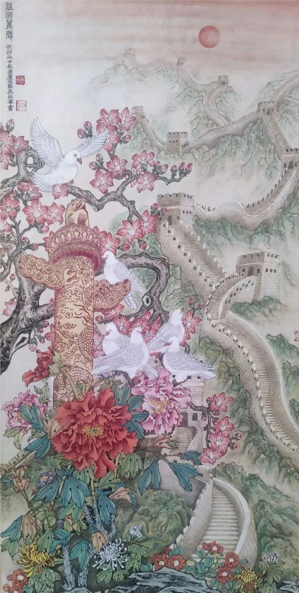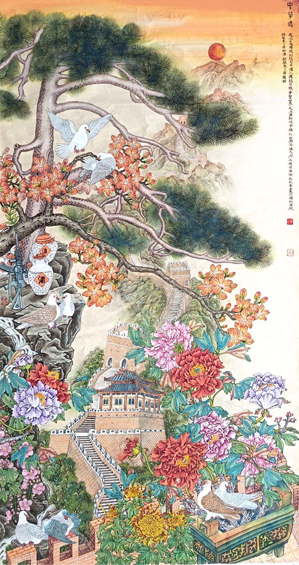 ![]() 《中华魂》171×93㎝ 2025年 个性是国画艺术的生命力 文/吴秋华 大千世界,不但动植物有个性,万物皆有个性,有个性才有生命力。艺术也一样。就中国画而言,它不仅具备造型基础、笔墨技巧这些基本功,还要在所画物象的神似上下工夫,因为中国画强调的是“神韵”追求的是“意境”,与西洋画强调的是“真”,追求的是“象”,是截然不同的两种艺术观点,所以中国画仅仅追求形似是不够的,还应该追求画面上的“神韵”和“意境”,通俗的说就是追求艺术的个性,何谓个性《现代汉语辞典》中告诉我们:个性就是在一定的社会条件和教育影响下形成的一个人的比较固定的特征。 ![]() 《花好月圆》66×66㎝ 2025年