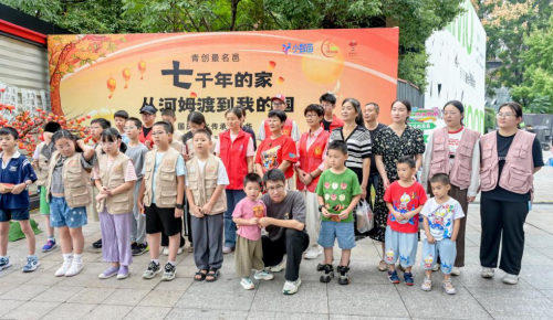 二、文化传承中的青春创意 在“七千年的家·从河姆渡到我的国”主展区,凤山街道团工委充分发挥青年创新优势,联动“青创最名邑”文创团队及儿童志愿者,打造四大互动功能区: 河姆渡文化长廊:青年设计师团队通过光影纪录片、儿童绘画展及文物语音导览系统,生动再现七千年文明脉络; 手工互动工坊:青年创业者指导居民参与红绳编织、文物涂鸦等传统技艺体验,推动非遗文化走进社区; AR明信片创作区:由“青创最名邑”科技团队提供技术支持,居民通过手机扫码即可将手绘明信片转化为动态AR作品,融合传统与现代科技; 祈愿树与祝福录制:青年志愿者协助居民录制家国祝福视频,并通过无人机全景采集活动影像,展现科技与人文的深度融合。 三、青创市集汇聚公益暖流 本次活动的“幸福集市”板块特别引入“青创最名邑”公益伙伴资源,组织义剪、义诊、手工义卖、政策科普等便民服务。值得一提的是,红色合伙人雁雨山房与幸福里共富工坊公益基金将全部义卖所得款项统一捐赠至“慈善一日捐”公益账户,以实际行动传递爱心,深化活动的公益内涵与社会价值。 青年创业者们通过市集平台展示创新产品与服务理念,同时传递公益精神,进一步强化了“青创最名邑”品牌与社区治理的协同发展。 四、青春寄语礼赞盛世 活动尾声,凤山街道团工委代表与青年志愿者、社区居民共同在祈愿树下集结,齐声高呼“祖国生日快乐”,并通过抽奖环节发放由儿童志愿者手绘的河姆渡文化套盒及NFC文创礼品,将现场氛围推向高潮。