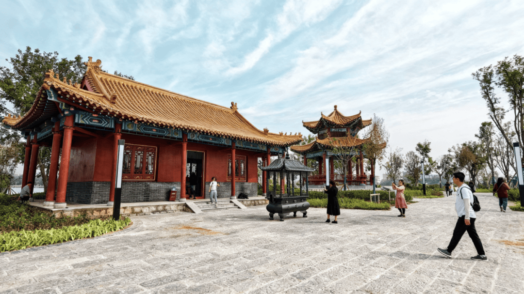 在这片独立雅致的天地中, 你不只是过客,更是故事的续写者。 系一条祈福带,将心愿轻轻系于枝头; 挂一方祈福牌,让祝福随风摇曳; 或是乘坐游船,荡漾于碧波之上, 看湖光山色缓缓展开…… 历史的情怀与当下的意趣,在此刻完美相融。