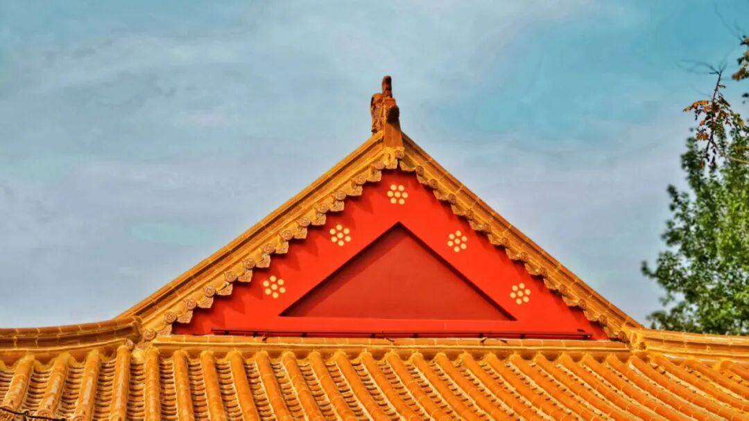 唐赛儿祠肃立于绿荫之中, 金黄的琉璃瓦映照着往昔, 朱红的墙垣诉说着沧桑, 飞檐翘角勾勒出历史的剪影, 尽显岁月沉淀的厚重。