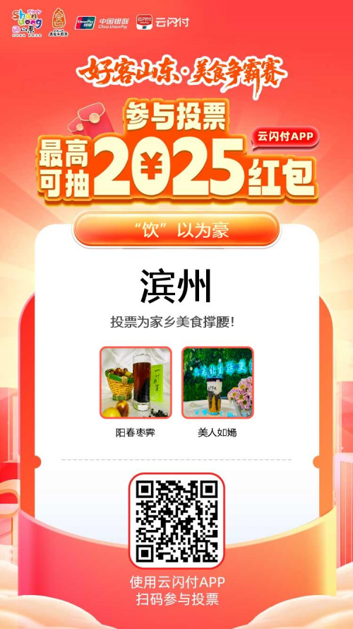 饮品用料:邹平山药、博兴蜂蜜、奇亚籽、酸奶、姜黄粉、巴西莓粉 饮品制作:选用邹平山药80克蒸熟,碾压,加博兴蜂蜜和姜黄粉调制基底,呈现邹平鹤伴山山形,然后倒入200ml提前10分钟泡好的奇亚籽,加入200g自制酸奶,最后淋上莓汁。 营养功效:这杯由山药、姜黄、巴西莓、酸奶、奇亚籽和蜂蜜制成的饮品,是一杯集抗炎、抗氧化、益生、能量补给、和美容养颜于一体的全能型健康饮品,尤其是莓汁,号称可以喝的护肤品,加上姜黄的排毒,饮用之后悄悄变美,蔡澜先生说:美食如馐、美人如嫣,故此得名。 投票指南——共赴一场风雅之约 预赛投票通道已开启,至10月17日20:30:00结束。您的每一票,远不止是一次简单的选择,更是对匠心精神的至高礼赞,是对地域文化的深切认同,是为齐鲁美食增光添彩。 扫描下方二维码,即刻投上你的关键一票吧(两个回合都要选哦),还有机会赢取通用红包。