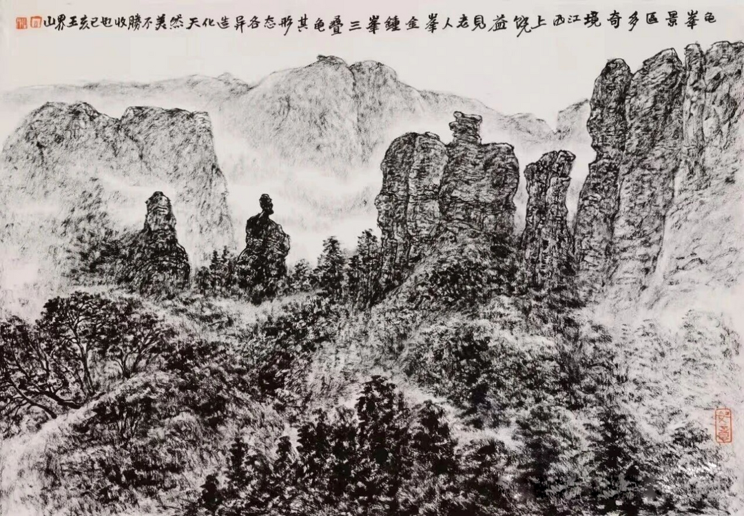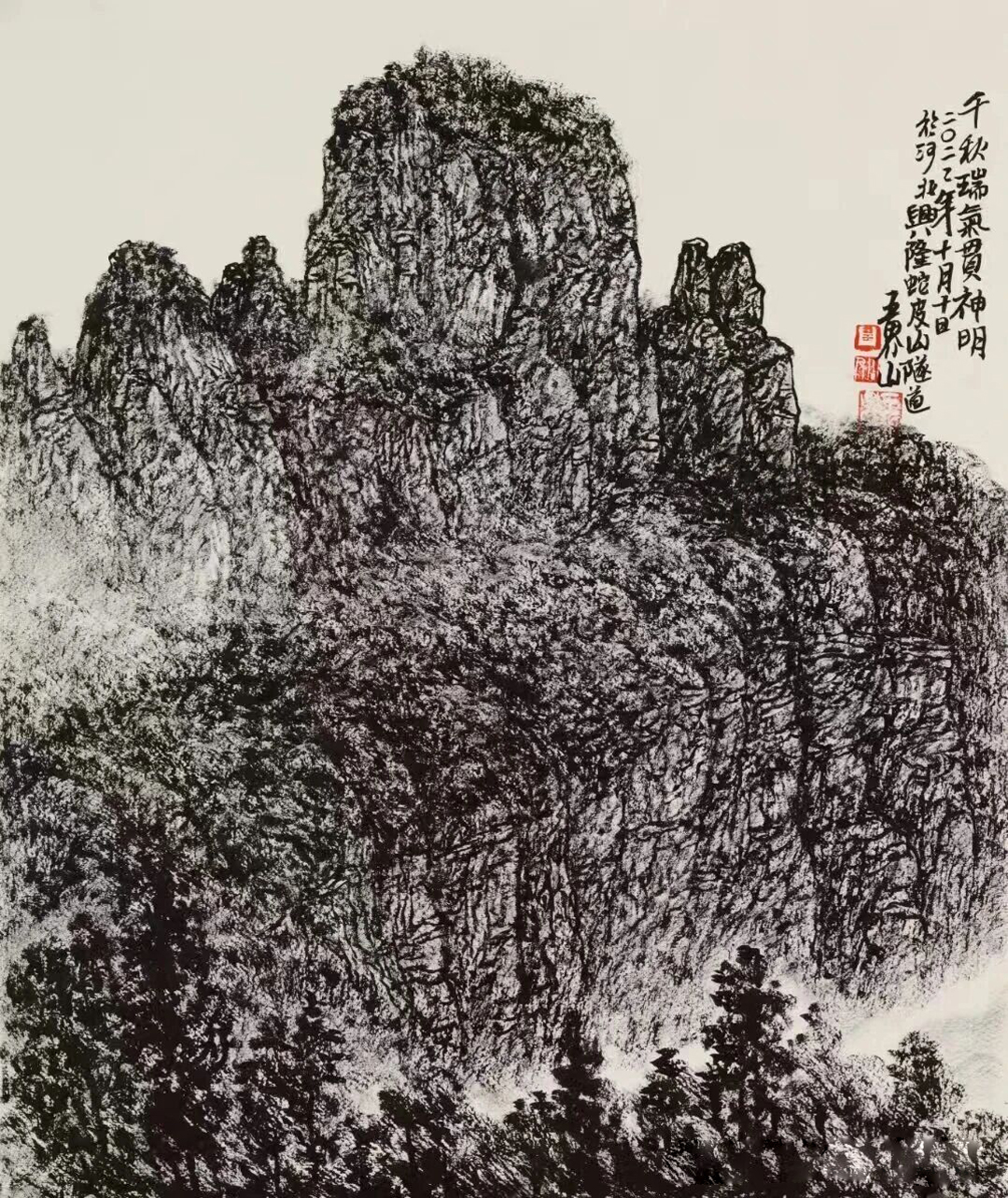 四、品牌影响力:学术价值与文化传播的双重实现 王界山焦墨艺术品牌的影响力,既体现在学术领域的广泛认可,也彰显于文化传播的深远成效。在学术层面,他被业界视为继黄宾虹、张仃之后焦墨山水的重要传承者与创新者,其作品因“深化山石结构表现、拓展焦墨意境维度”的突破性贡献,多次入选全国美展等顶级展览。尚辉、张志民等业界名家对其“笔意丰富、境界高远”的评价,更印证了其艺术品牌在学术谱系中的重要位置。这种学术认可不仅源于技法创新,更因其作品回应了时代对“传统文脉现代转化”的需求,为山水画的发展提供了可资借鉴的路径。
