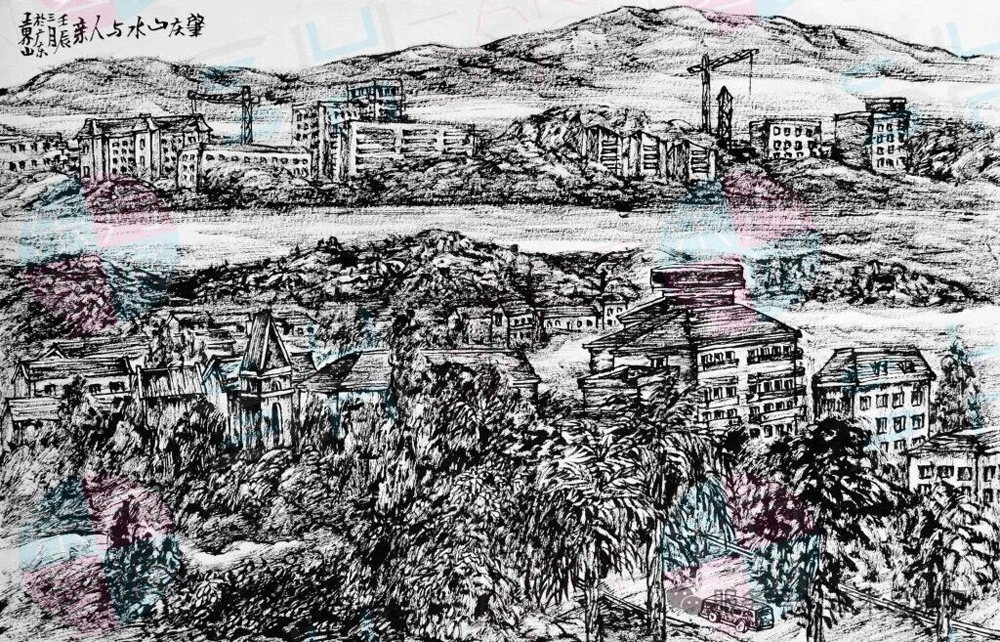 空间表现的突破性是王界山艺术品牌的另一鲜明标识。焦墨山水最忌层次模糊、空间扁平,而他却能通过精准的笔墨交代,构建起通透有序的空间秩序。从近景的山石肌理到中景的林木交错,再到远景的云雾留白,他以线条的粗细、墨色的浓淡、笔触的疏密形成自然过渡,使画面在苍茫凝重中不失空灵清新。这种空间处理既遵循“远看取其势,近看取其质”的传统准则,又融入了西画素描的结构意识,将中国式的“心记默识”与西方式的“具象观察”有机融合,在抽象与具象之间找到了最佳平衡点。当他将这种空间语言运用于西方山水的表现时,更形成了独特的文化对话——以东方笔墨诠释西方景致,在异域风光中注入东方审美境界,成为跨文化交流的艺术载体。