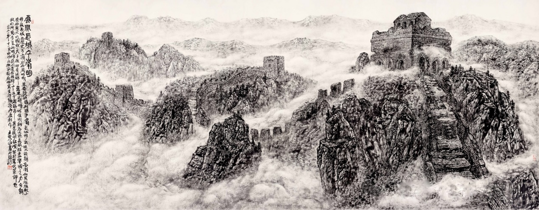 精神内涵的独特性为其品牌注入了灵魂深度。作为军旅画家,王界山的焦墨山水始终涌动着家国情怀,那些雄健的山石、绵延的长城,既是自然景观的再现,更是当代军人气概与民族精神的象征。但这种精神表达绝非概念化的口号,而是通过“静”的意境得以升华。徐悲鸿曾言“静是判断一切中国画的关键”,王界山深谙此道,其作品始终保持着一种澄明静穆之气,即便刻画山石的刚硬质感,也能在笔墨交织中透出平和从容的心境。这种“于静中见力”的精神特质,使他的焦墨艺术既具雄健风骨,又含人文温情,形成了“刚柔相济、形神兼备”的审美特征。
