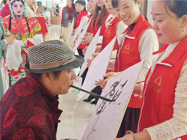 文艺汇演环节,十四台节目轮番登场,精彩纷呈,将活动推向一个又一个高潮。范红兵、朱端珍领唱,全体工作人员合唱的《跪羊图》率先登场,温情的旋律、真挚的歌词,搭配整齐划一的演唱,瞬间将孝亲敬老的氛围拉满,感染力直抵人心;陈雪花、陆淼淼带来的新疆舞《留在我身边》热情似火,旋转的裙摆、灵动的舞姿,尽显活力与风情;匡飞的男声独唱《母亲》深情款款,一句句对母亲的眷恋与感恩,唱哭了在场不少观众;赵娅兰、谢向阳演绎的京剧《贵妃醉酒》韵味醇厚,一招一式、一腔一调都尽显专业功底,让戏迷朋友们过足了瘾;谢恩君带来的花鼓戏《刘大娘笑呵呵》诙谐幽默、接地气十足,熟悉的旋律一响起,便引发了现场老年朋友的共鸣,不少人跟着轻声哼唱;莫国珍、李喜龙的双人交谊舞《草原花月夜》柔美浪漫,舞步轻盈、配合默契,仿佛将观众带入了辽阔的草原月夜;李艳芳的女声独唱《故乡是北京》饱含深情,字正腔圆的演唱中满是对故乡的眷恋;石更友、邓彩娥带来的经典花鼓戏《刘海砍樵》更是将现场气氛推向高潮,耳熟能详的唱段、生动传神的表演,赢得掌声不断;道墨大师的蒙眼写书法、用脚写书法表演堪称惊艳,只见他或蒙眼挥毫,或以脚执笔,笔走龙蛇间,一幅幅苍劲有力的书法作品跃然纸上,引得现场观众连连称奇;易伟辉演唱的《好人多》传递满满正能量,蒋雪峰的魔术表演悬念迭起,杨君阳的萨克斯独奏《秋恋》婉转悠扬,李跃东的武术表演刚劲有力,谢向阳、赵娅兰演绎的黄梅戏《女驸马》片段韵味悠长,每一个节目都各具特色,让老年朋友们看得尽兴、听得开心。