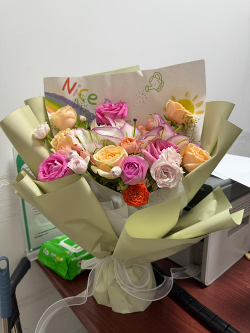 秋天的雨,细密而绵长,敲打着窗沿,带来丝丝凉意。9月23日上午,营业厅的门被轻轻推开,一位客户带着一身微凉的水汽走了进来,而她怀中,却紧紧护着一束灿烂的、带着温度的鲜花。 这束花是如此醒目,仿佛一道温暖的阳光,驱散了室外的阴霾。客户的目光在人群中寻找,最终定格在我们的内勤行长——赵鑫经理的身上。 “赵经理,多亏了你,不然我的损失可就大了!这束花,请您一定要收下!”