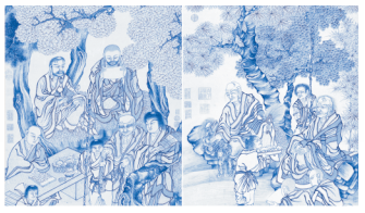 明│丁云鹏(应真像)│仿青花(施釉) 系列 (文创产品:高端定制背景墙、瓷砖、艺术玻璃、服装、杯垫、镜子、书签、盒装火柴、扑克牌、工艺画、直尺、手机壳)