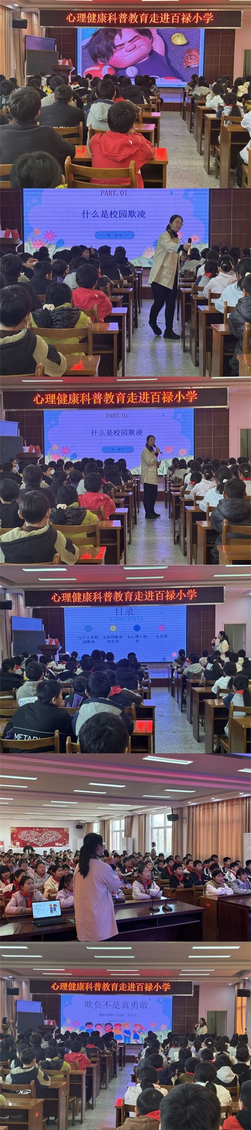 现场学生专注听讲,积极参与互动,在问答环节踊跃发言,展现出对心理健康知识的浓厚兴趣。此次活动是百禄小学响应“双减”政策、拓展学生成长维度的有力举措,不仅增强了学生对校园欺凌的认知与防范意识,更助力他们在减轻学业负担后,进一步筑牢心理成长基石,掌握情绪与人际管理的实用技能,为“双减”背景下的全面发展和阳光成长赋能,也为构建平安、和谐的校园生态添砖加瓦。