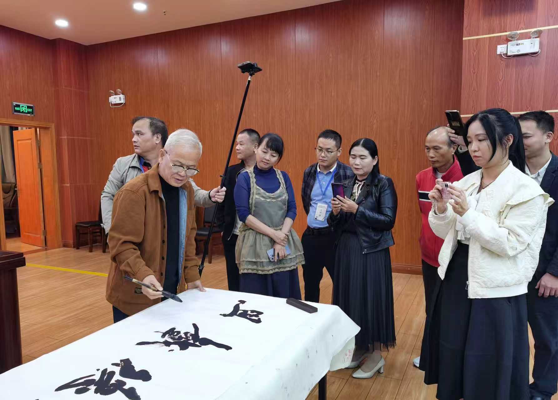 值得一提的是,此次书法培训班得到广西书法院名家闭理书、李翔峰、梁春、刘文勇4位老师亲临授课。书法大家们从理论拆解、现场示范、精准点评、文化延伸等书法知识层面将复杂书理化为通俗规律,从颜体的“轻重起笔”到魏碑的“斜切入笔”,从学员作品的线条质感与章法布局,从古今碑帖中溯源风格演变到挥毫时笔锋翻飞如舞剑的神韵,让笔墨技巧与艺术审美、文化传承深度联结,超越单纯技法教学,赢得了学员们热烈掌声。