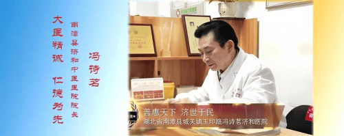 医者:仁德、仁心,方能救人于世;他生于中医世家师承其父冯祖林;他40余载如一日,无时不心怀中医潜心钻研! 荆楚大地,悠悠汉水,著有“八百里金南漳”之美誉的南漳县地处湖北省西北部,汉水之南,拥荆楚之华?乘汉水之利,是楚文化的发祥地,三国故事的源头!这里奇山秀水?多原始森林,藤蔓缠绕?花果累累,有众多的野生动物栖息其间,药源丰富,是天然的中草药药库…优越的地理环境及厚重的历史人文文化,为发展中医药事业提供了得天独厚的条件! 南漳县济和中医医院院长冯诗茗行医40余载,践行医者仁心 谱写人间大爱,救人无数。 他遍访民间名医集众家之长,师从国医大师邓铁涛;他博览群书,对各类古医药书籍、《黄帝内经》、《神农本草经》等更是细读精研•爱不释手;经过40多年临床实践总结终形成特色。从医多年,冯诗茗院长始终将医德牢记于心,心系百姓。在40多年的行医生涯中,他用精湛的医术和爱心,拯救着一个个鲜活的生命,重塑着无数患者的信心,使他们重获健康和幸福!