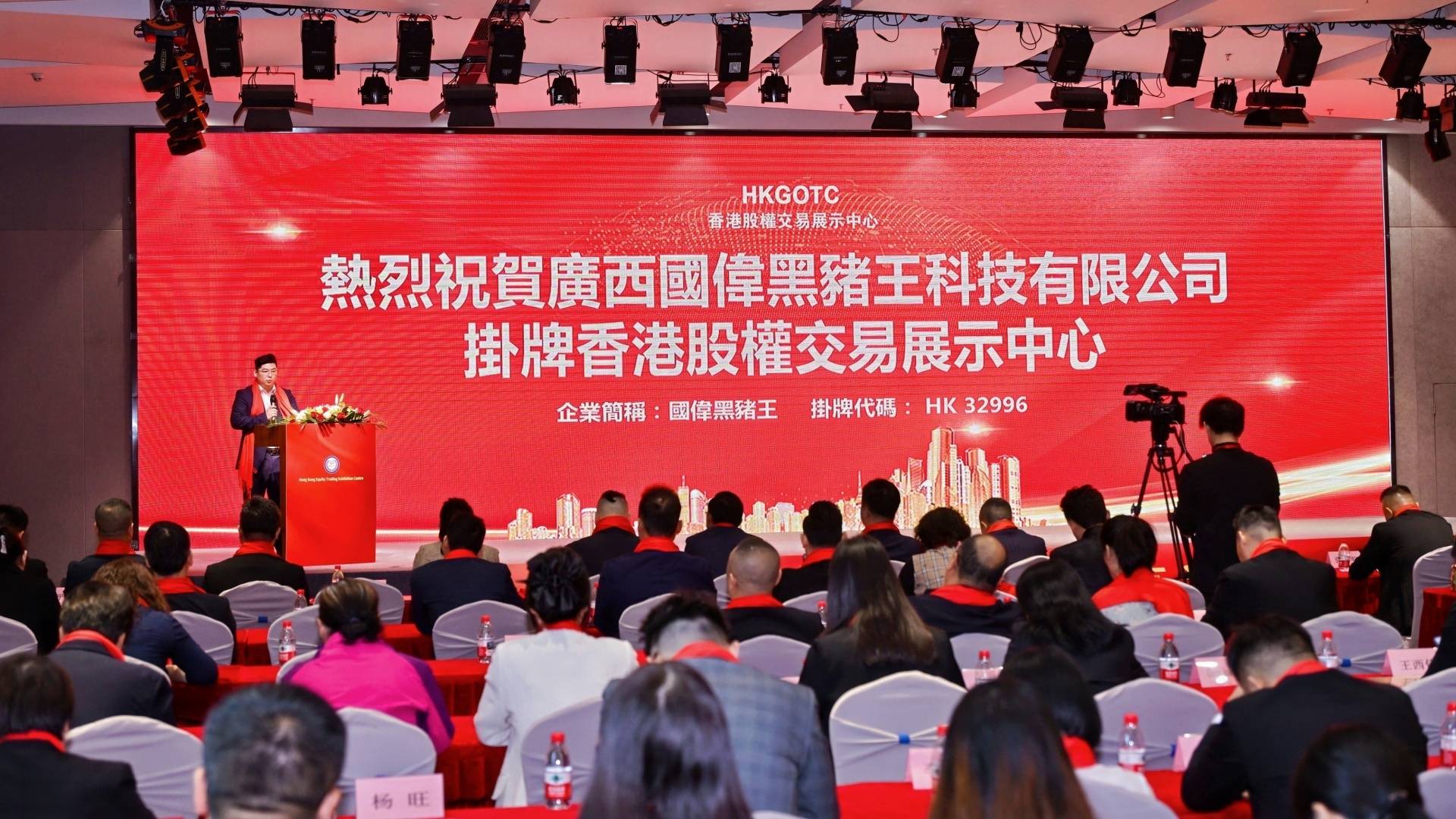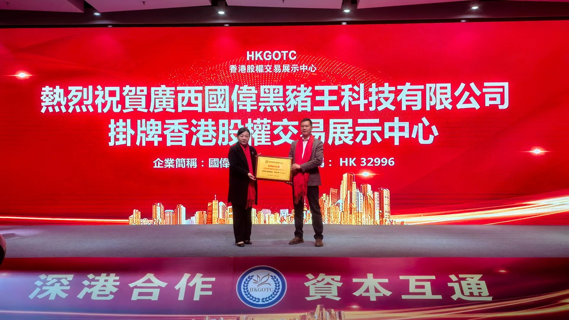 2025年11月29日,国伟黑猪王科技集团(以下简称“国伟黑猪王”)在香港股权中心成功挂牌(授牌代码:HK32996),标志着这家以黑猪产业为核心的农业科技企业正式迈入国际资本舞台。集团创始人王胜杰、总裁杨琴携核心团队出席挂牌仪式,集团副总经理赖明艺代表企业上台领牌。此次挂牌不仅是企业发展的里程碑,更成为推动农业现代化与乡村振兴的重要实践。