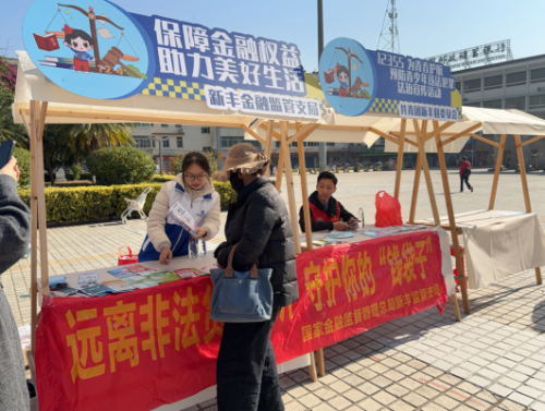 建行韶关新丰支行紧扣活动主题,在活动现场精心设置标语宣传区、互动打卡区等功能区域,聚焦金融消费者权益保护核心需求,向市民系统普及金融知识。支行工作人员针对电信网络诈骗、非法集资、虚假理财、非法中介等常见陷阱,讲解识别方法、防范技巧及维权路径,并结合真实案例深入剖析这类诈骗行为的作案手法与危害,帮助金融消费者和投资者树立理性消费理念。