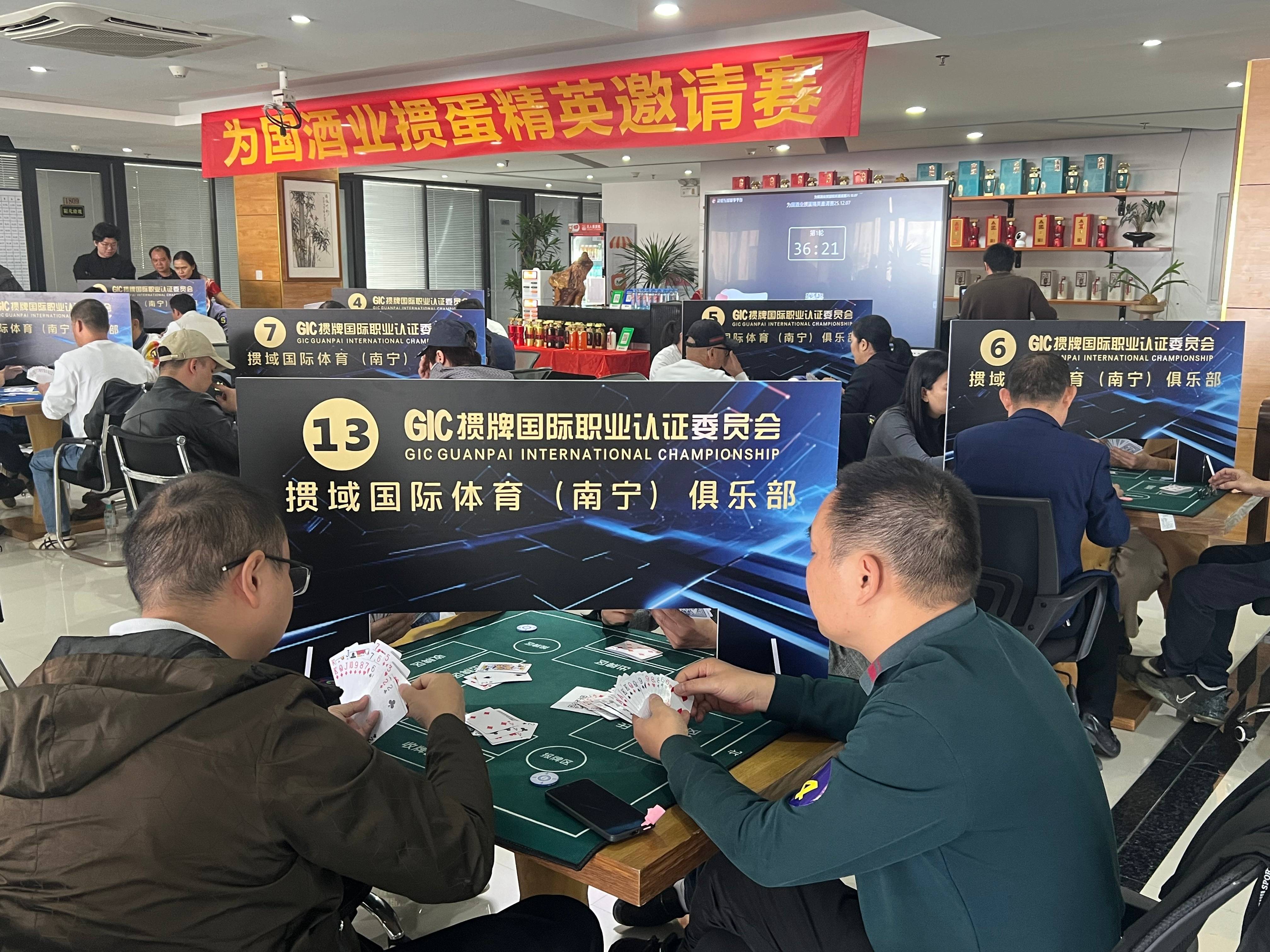 2025年12月7日, 由掼域国际体育(南宁)俱乐部与为国酒业联合主办的“品为国酒佳酿,交掼蛋挚友”掼蛋精英邀请赛在南宁圆满举行。本次活动成功汇聚了高尔夫圈层精英、上市公司集团代表、优秀企业家、广西电子商务协会、中盟科技园等各界人士,共108位掼牌爱好者齐聚一堂,以牌会友、以酒融情,共同见证了一场高端圈层融合与品牌价值深化的盛会。