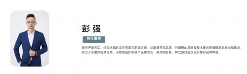 深耕眼镜领域,铸就行业传奇 彭强出生于 1979 年,丹阳这片眼镜产业的沃土孕育了他对眼镜行业的热爱与执着。多年来,他在眼镜领域不断探索,积累了扎实的专业知识和丰富的行业经验。他对市场趋势有着敏锐的洞察力和精准的判断力,这使得他在销售与企业管理方面游刃有余,能够带领团队不断推动企业在业务上取得持续发展与创新突破。 彭强打造了“镜仁堂”“润蒂医疗”“新睛控”“花魁”“GMG”等诸多眼镜产品品牌,这些品牌在市场上都具有一定的知名度和影响力。他的商业版图深度嵌入供应链下游体系,与国内众多医院视光中心紧密合作。在与医院视光中心的合作中,他为专业的视力检测与配镜服务提供了坚实的产品保障。每一位前来配镜的患者,都能在他提供的高品质、适配性强的眼镜产品中,找到适合自己的视力矫正方案,从而在视力矫正之路上精准前行。 同时,他的业务触角还精准延伸至各大药房连锁。借用药房广泛的网点布局和庞大的客流量,优质眼镜产品得以更高效、便捷地触达消费者,满足了大众对于视力健康与时尚美观的双重追求。在他的引领下,眼镜运营业务蒸蒸日上,成为推动眼镜行业发展的中坚力量,引领着行业迈向新的高峰。