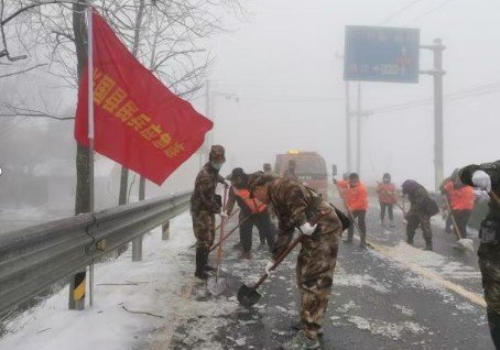 危难时刻,筑起“铁后盾” 在人民面临危难的关键时刻,祁明华总是冲锋在前,成为守护人民的坚实后盾。驻地突遭雪灾时,狂风裹挟着暴雪,道路被厚厚的积雪覆盖,群众的生命财产安全受到严重威胁。祁明华心急如焚,第一时间协调筹措物资,迅速组织民兵队伍奔赴救灾一线。他身先士卒,顶风冒雪,带领民兵们清理道路上的积雪和冰块,为救援车辆和群众开辟出一条条生命通道。同时,他积极组织转移受灾群众,将他们安全送到安置点,确保每一位群众都能得到妥善安置。在他的带领下,民兵队伍成为了抗冰救灾的中坚力量,为驻地群众筑起了一道坚不可摧的“铁后盾”。