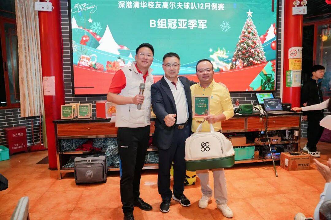 一场比赛,一次相聚;从清晨绿茵上的并肩挥杆,到夜幕下杯盏相迎的欢聚时刻,昕晖体育杯——暨深港清华校友高尔夫球队12月例赛,在专注与欢笑中画上了圆满句号。赛场上的每一次起落,晚宴中的每一次举杯,都是队友情谊最真实的注脚。 岁末将至,圣诞在望,新年在即。借此温暖相聚的时刻,提前祝愿各位队友圣诞快乐、阖家幸福;也祝大家在新的一年里平安顺遂、万事胜意,事业稳步向前,家庭温暖如常。愿热爱常在、挥杆常顺,球技持续精进,杆数一路走低。 感谢每一位队友的热情参与与真诚付出,感谢轮值队长昕晖体育张泽亮队长的倾情筹备与鼎力支持,也感谢所有为赛事默默付出的工作人员与赞助伙伴。期待下一次相聚,再赴绿茵、再续情谊,深港清华校友高尔夫球队,始终并肩同行。 赞助鸣谢 1、轮值队长张泽亮赞助:honma球包1个,callaway球包1个 ,callaway背包2个,callaway球道木2支,Ecco衣物包1个,Aersom雨伞2把,Footjoy洗漱包2个,JL提包1个,taylormade 收纳包2个,Ecco鞋包2个,BURKE推杆3支;物品总价值4万元以及赞助现金5000元晚宴抽奖 2、许燕赞助面膜10套抽奖 3、夏于岚赞助一箱清酒和新浪等媒体支持。 4、于涛赞助进口洗发水10瓶。 5、陈柏清赞助“高海拔生态莼菜十箱” 6、深港球队队友“深圳天象文仪家具品牌”陈扬导赞助一杆进洞的高端龙马精神茶桌椅一套,价值36.8万。还赞助抽奖奖品人体工学椅(可零重力午休床)1张价值3680元! |