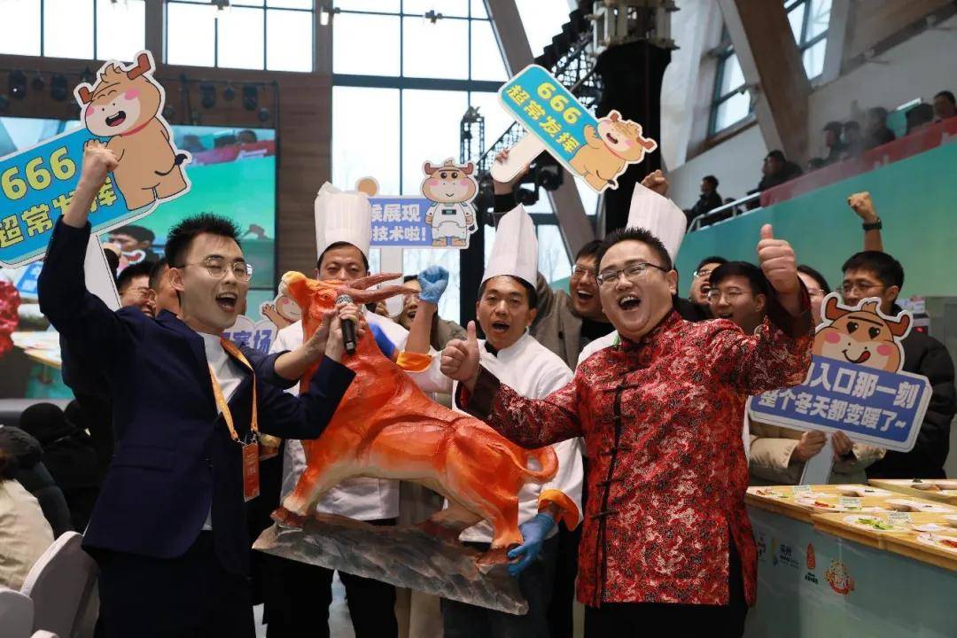 在牛刀小试—庖丁解牛友谊赛比赛区域,30名专业相牛师同台比拼相牛、解牛技艺,直观展示了阳信牛肉产业从“活牛”到“食材”过程中对品质的严苛把控与匠心技艺,现场观众对现代畜牧与加工技术的专业化、精细化水平表示惊叹。
