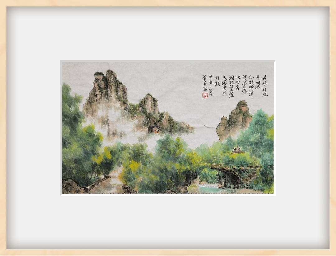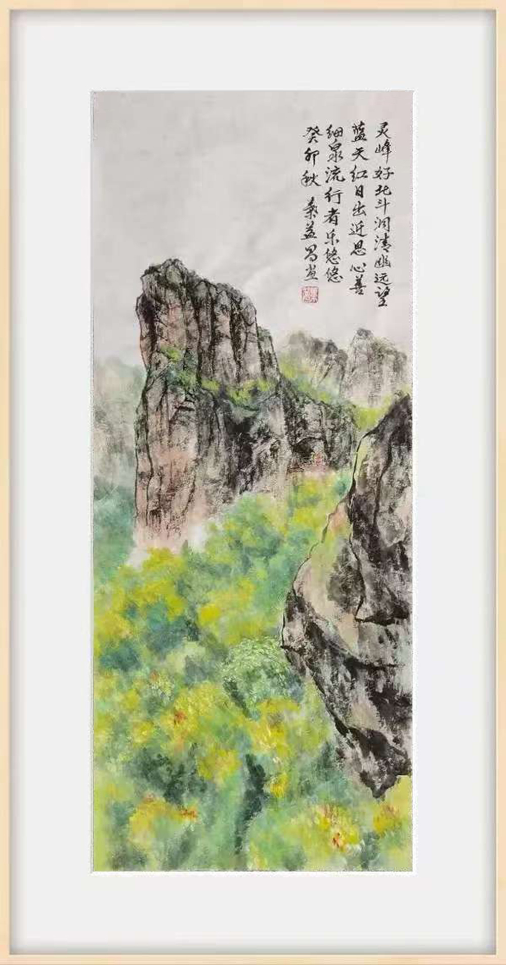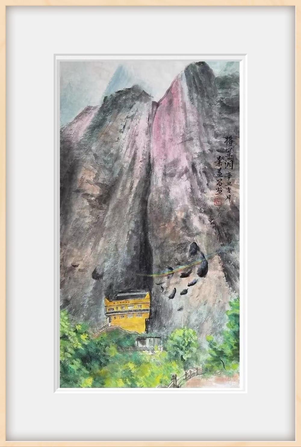 叶益昌的艺术底气,源于人生履历里层层累积的丰厚底蕴。毕业于浙江师范大学美术教育专业的他,身兼语文与美术教学的双重实践,让笔墨技法的锤炼与文辞意境的涵养,在他的创作里达成了浑然天成的交融。年少时那份对绘画的赤诚热爱,在军旅岁月中褪去了稚气,军营的刚劲风骨融入笔锋,为其作品注入了凛然的筋骨与内在力量;数十载教书育人的时光里,他以美育滋养学子心田,更以生活为镜洞察世事,对乡土人情的深切体悟与对故园山水的缱绻深情,化作了日后创作中汩汩不绝的灵感活水。退休之后,他抛却俗务纷扰,一心沉潜于诗画天地,每日与砚田笔墨相伴,在“画中题诗、以诗释画”的创作乐趣里陶然自得,让艺术真正成为了生活的本真底色。
