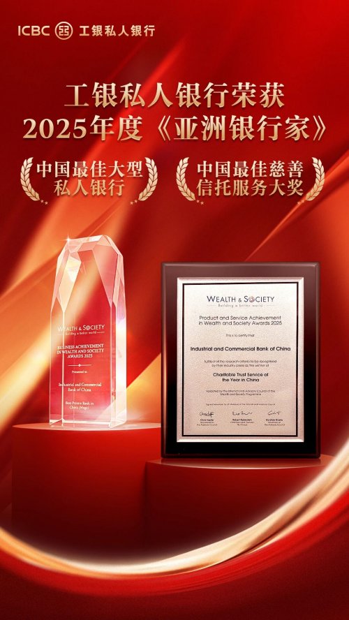 2025年12月10日,在《亚洲银行家》杂志主办的2025财富与社会颁奖典礼上,工银私人银行凭借卓越的综合化服务与市场口碑,以及在慈善金融领域的创新实践,在众多金融机构中脱颖而出,蝉联“中国最佳大型私人银行”,并荣获“中国最佳慈善信托服务大奖”。 伙伴同行 家企欣荣 工银私人银行始终坚持“以客户为中心”的初心,充分发挥工行在个人金融、资产管理、公司投行、金融科技、风险管理等领域的集团优势,全面整合集团优质资源,组建近万人的服务团队,为客户提供全视图、全流程、综合化、专业化的全方位卓越服务,覆盖境内各主要城市,并形成触达全球的服务网络,持续引领国内私人银行业务的发展。 近年来,工银私人银行紧扣“国家所需、金融所能、客户所盼、工行所长”,深耕财富、家企、家业三大领域,持续迭代“君子智投”智慧配置工具,建立共建、共享、共融的开放式产品生态,打造企业家伙伴银行,相伴企业家勇毅前行,推出“工银传诚家”服务体系,推动家业服务全面升级,致力于为客户提供全面金融解决方案,服务人民美好生活,助力经济社会高质量发展。 君子伙伴 善行致远 工银私人银行围绕客户的公益慈善需求,携手合作机构积极构建“君子伙伴公益慈善服务”生态圈。推动公益慈善服务模式创新,形成定制型、集合型、区域型三大慈善信托综合顾问服务模式,推出私人银行客户“慈善账户”,创新打造范式引领的慈善金融数字化载体。搭建公益慈善服务场景,汇聚集团合力,以集团GBC联动赋能公益慈善金融,推动全面金融服务方案落地。坚持服务国家重点战略,以公益慈善做好金融“五篇大文章”,在科教兴国、乡村振兴、生态保护、教育公益、增进民生福祉等方面取得实效,引导客户财富向善,助力实现共同富裕。 未来,工银私人银行将积极践行金融工作的政治性与人民性,在集团“五化”转型的背景下,通过数字化赋能综合服务生态,在服务高质量发展中展现领军银行担当,用专业与服务持续引领国内私人银行业务迈向新高度。 工银私人银行,君子偕伙伴同行!
