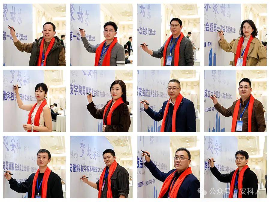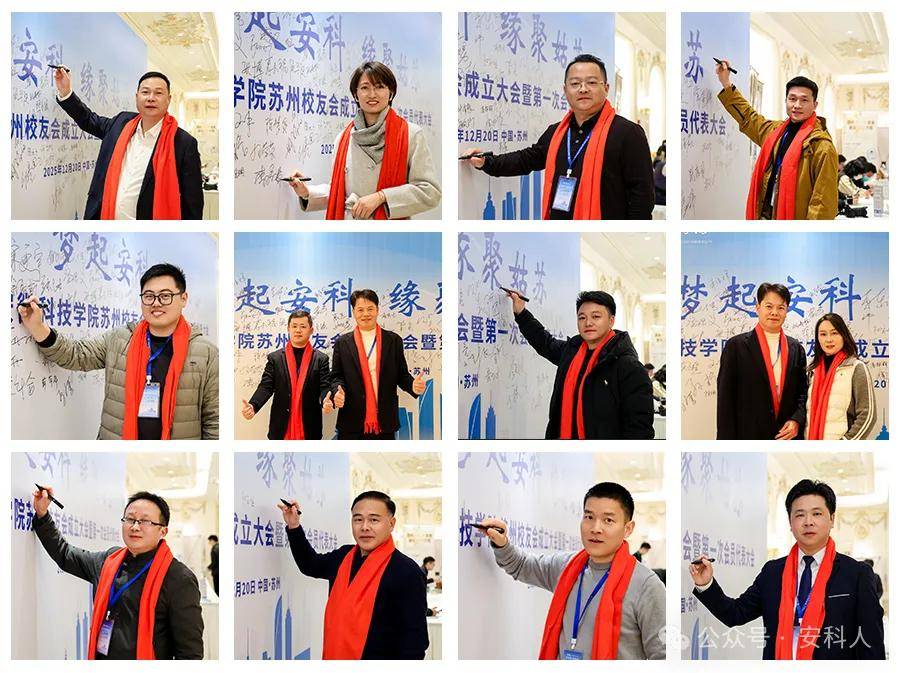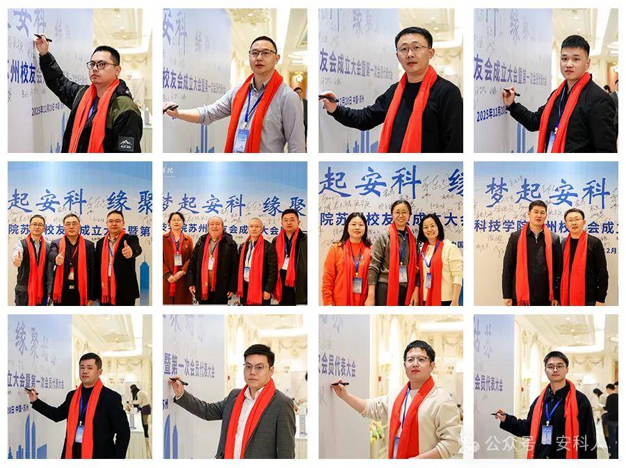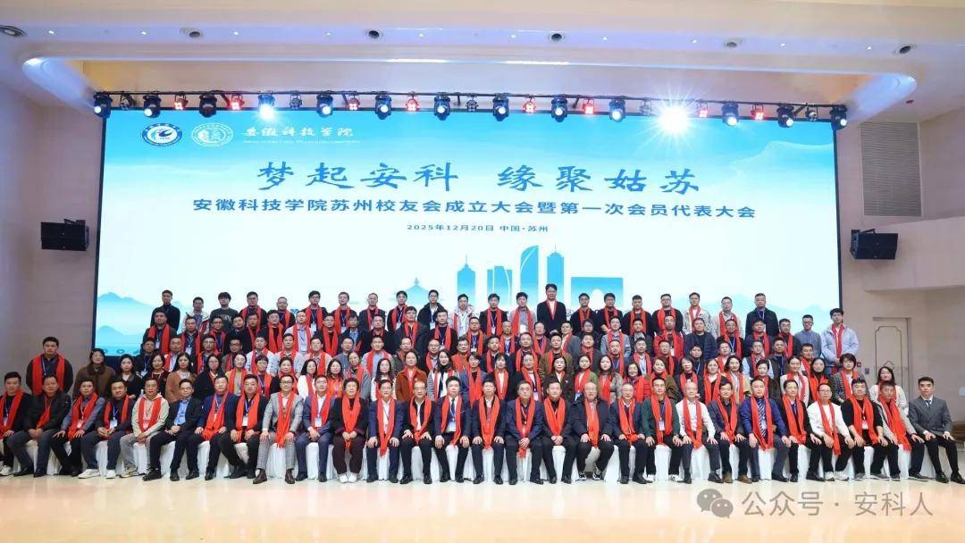 岁暮天寒 ,情聚姑苏 为增进在苏校友情谊,凝聚校友力量,共话未来发展,安徽科技学院苏州校友会于2025年12月20日(星期六)苏州白金汉爵吴中店成功举办了 安徽科技学院苏州校友会成立大会暨第一次会员代表大会。本次活动旨在搭建交流平台,促进资源共享,同时感受母校发展脉搏,传承“明德,致知,笃行,创新”的安科精神。共有来自各行各业、不同届别的131位在苏校友欢聚一堂,现场气氛热烈,情谊浓浓。 温馨签到,重逢叙旧 活动伊始,校友们陆续抵达现场。签到处欢声笑语不断,老友重逢的喜悦、初识相见的热情迅速点燃了现场氛围。校友会精心准备了带有母校元素的纪念品,唤起了大家美好的校园记忆。