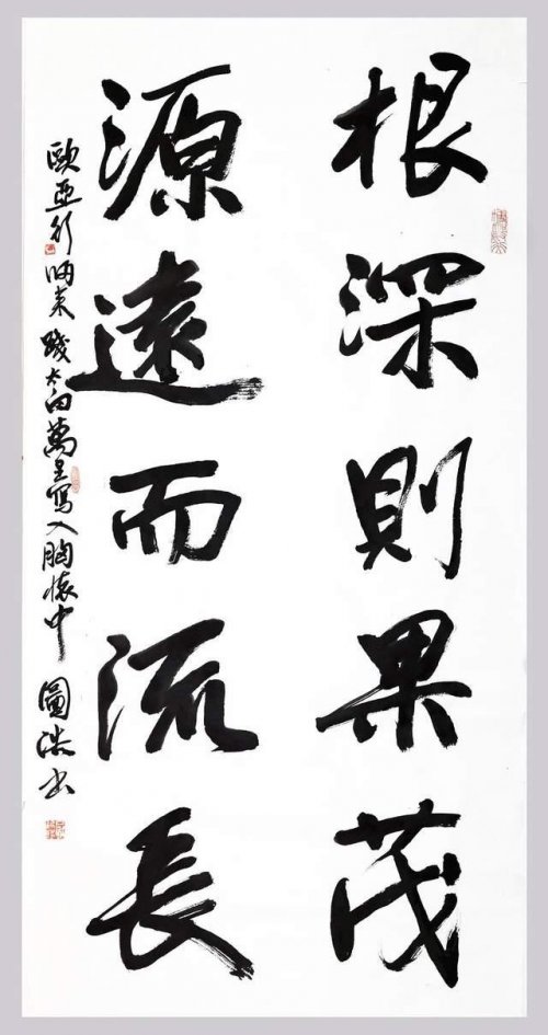 笔怀真气 惊撼书坛 罗 成 书法者,最要紧的是取真气,而非以笔墨炫技为能事。正所谓散怀抱于笔墨,寄真情于翰志,如此自出机轴,渐老渐熟,方能将取古人之神,写就一派大家气概!今观屠新时先生书法众幅,其中最令人欣赏的,便也就是他那大气洒脱的翰墨风范!笔下书法,堪称是真气盈怀而流露于毫端,书道循古,意溢于形,每一处笔墨挥毫,都可谓是屠新时先生多年来临池问道的外化体现,即一字之中,皆其心推之,有洁矩之道也! 再者,屠新时先生身为文人书家,其人不作假,其性学儒风,故笔墨问道,自然也是能以品节为辅。所见书法,用笔是具浩然磊落之风骨,文采则见书学涵养之深厚,尤以众幅榜书大作为最。但见书中浓墨饱蘸,奋力挥毫,遒劲处骨肉停匀,转折时气韵惊飒,吾虽未亲睹先生运笔,然字里行间皆可见其力发臂腕,势若屈铁,诚乃全神贯注于笔端!昔人论书,谓书必具神、气、骨、血、肉之五要,今观屠新时先生书作,恰是深得于此道,遂见意与道合,无愧于书家正统之传也! ( 罗成:著名书画艺术评论家 ) 2025年7月20日