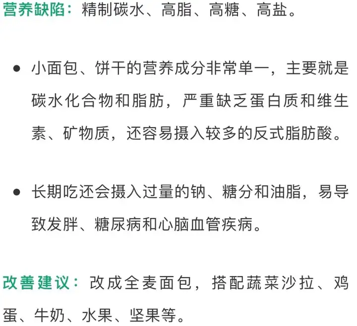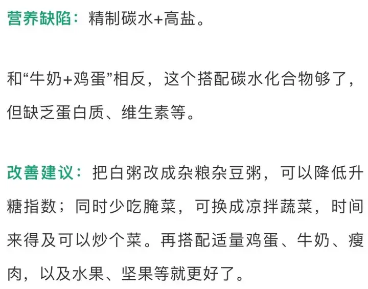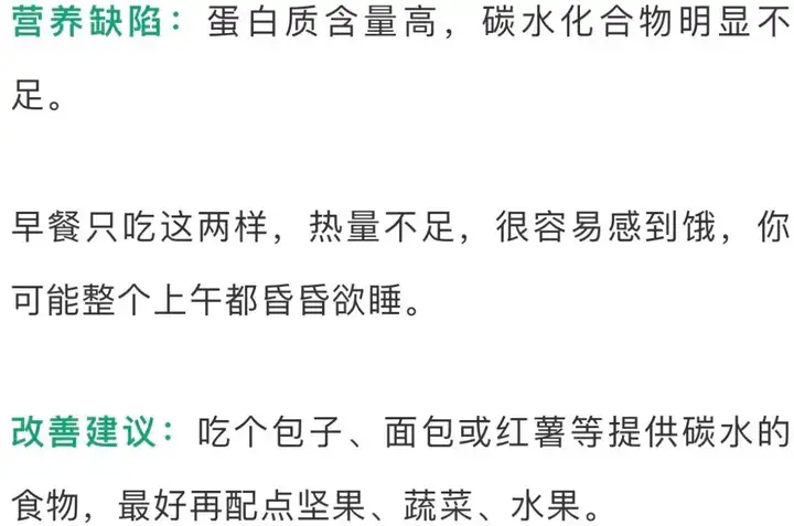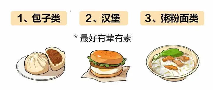 这些早餐不太健康 1.牛奶+鸡蛋 ![]() ![]() 2.白粥+腌菜 ![]() ![]() 3.豆浆配油条 ![]() ![]() 4.面包、饼干 ![]() ![]() 这么多早餐都不健康,到底应该怎么吃才方便又营养? 看这些解决方案吧! 早餐这样安排,简单又健康 1. 能存着吃的早餐 适合每天上班卡秒打卡,不能在路上耽误一分钟的人。 提前买好这5种食物,早上每样带一种,马上走人。 ![]() 2. 路上买的早餐 适合想要省事,直接在外面买早餐的人。 上面后四类不变,主食可以在这三类中选。 ![]() 3. 自己10分钟能做的早餐 适合对早餐有点要求,至少能有20~30分钟做饭、吃饭的人。 可以提前一天做好,第二天热一下就能吃。 或者提前一天准备好食材,第二天简单烹调,比如炒米饭、打杂粮糊糊、泡碗牛奶燕麦粥、做三明治或者鸡蛋饼等。 要能抽出2分钟烫个蔬菜加些坚果就更好了。