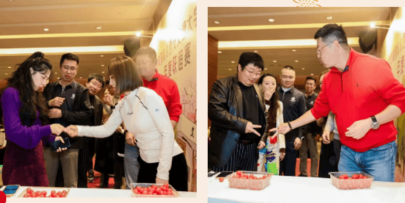趣味互动,欢乐升级!晚宴迎来超燃的吃柿子大赛,两队各派 6 人,三男三女组队上阵。赛场规则趣味十足,先划拳定胜负,赢方方能品尝西红柿,最终比拼哪支队伍率先吃完筐中果实。选手们各展身手,现场欢笑声、呐喊声不断,再度将晚宴的欢乐氛围拉满!