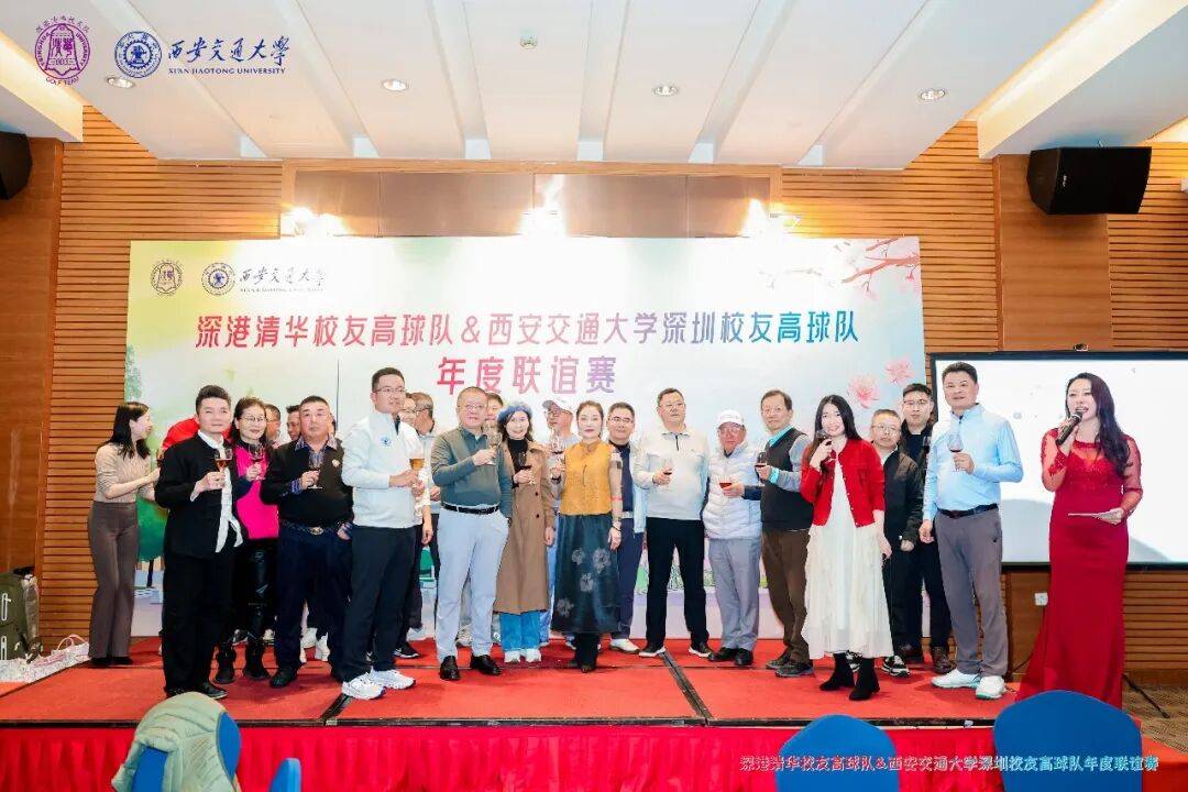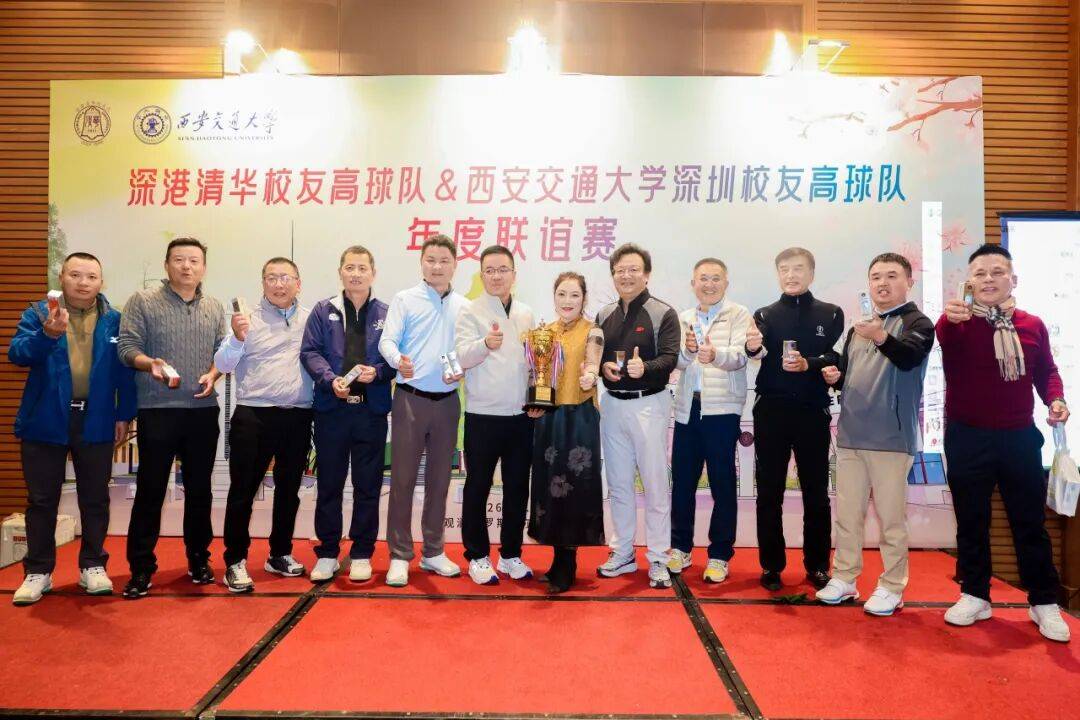 《恭喜发财》 喜乐开场,福运满堂!晚宴伊始,深港清华校友高球队邵慧队长领衔队友登台,带来喜庆满满的开场节目《恭喜发财》。动感歌舞点燃现场氛围,财神送金币、十全十美红包的惊喜环节接连登场,将欢乐与好运传递给在场每一位家人。声声祝福萦绕耳畔,满满财气汇聚席间,现场气氛持续升温、嗨至高潮,为大家送上新春期许:愿新的一年,财源广进、万事顺遂,岁岁年年皆如意! 荣誉颁奖 荣誉榜单 总杆冠军:张军 总杆亚军:王辉 总杆季军:姚兵 净杆冠军:吉学龙 净杆亚军:赵峰 净杆季军:林虎 男子最远距离奖:张飞翔 女子最远距离奖:钟成莲 最近旗杆奖 :张军、于化荣 最近中线奖 :牛勇、谭志东 女子优胜奖:何彩英 最多小鸟奖:麦国梁、虎哥 BB奖:罗忠放 团体冠军:深港清华校友高球队 团体亚军:西安交通大学深圳校友高球队 幸运抽奖