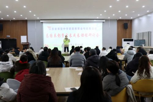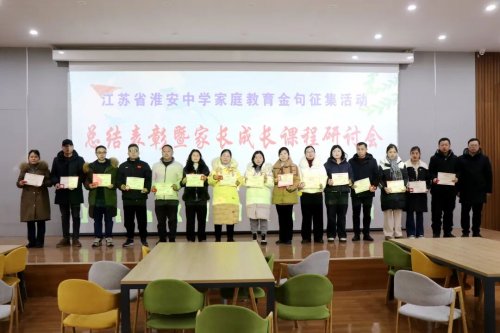 为凝聚家校育人合力,提升家长教育水平,1月24日上午,江苏省淮安中学在校史馆二楼“大鸾书屋”举行家庭教育金句征稿活动总结表彰暨家长成长课程研讨会。学生工作处主任徐怀亮,副主任刘春明、张巨康、赵永辉和部分获奖家长参加了活动。