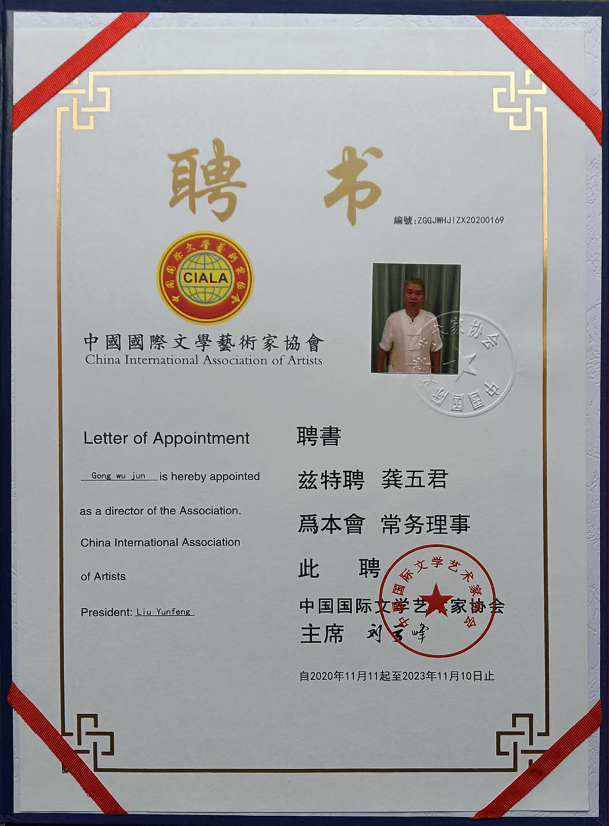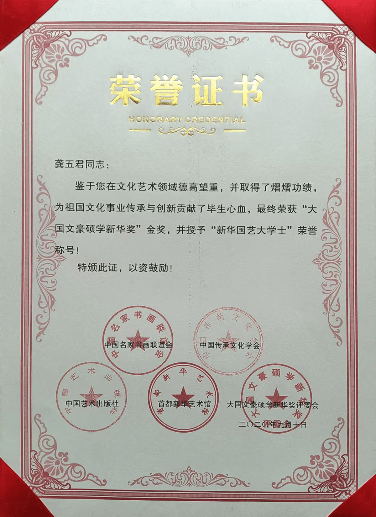 【艺术简历】 龚五君,中国艺术促进会理事、中国著名画家、国学学会会员、中国文化管理学会会员等等。60周年其作品出纪念专题邮票,入选中国国家博物馆,2005年其作品出过国家级艺术邮票,曾先后在《北京国际艺术博览会》、《艺术与收藏》、《中国艺术家》、《祥和中国》、《中华当代艺术家作品展获奖作品集》、《红色中国》、中萄文史出版社《奥运之歌走向世界的艺术大师》等出书其中国画作品多次获金奖,作品荣获中国书画收藏研究院最高奖项“一等项”。被国家定为民族文化遗产的精髓。