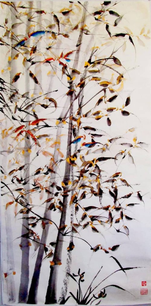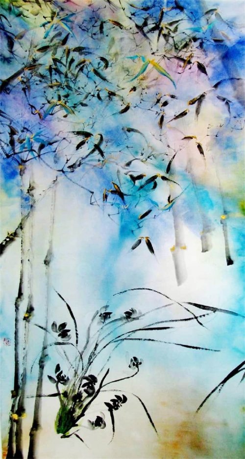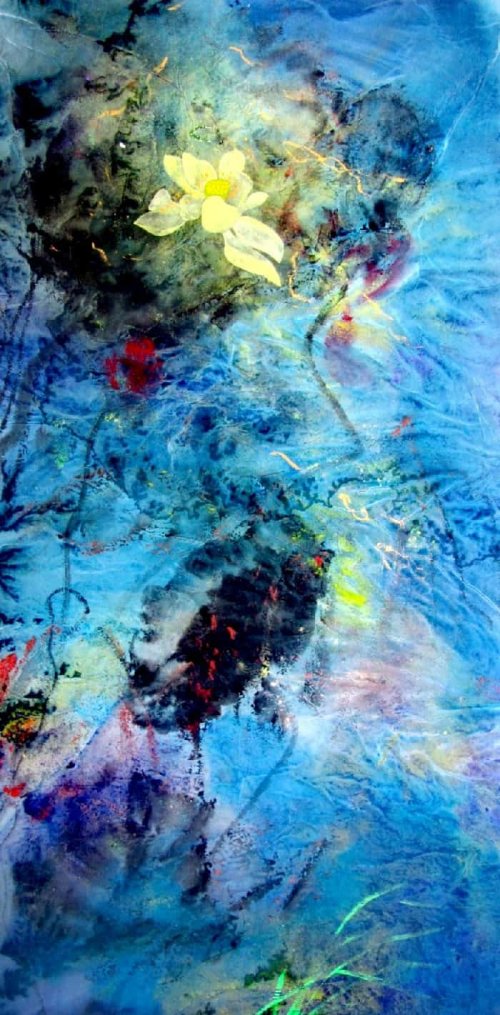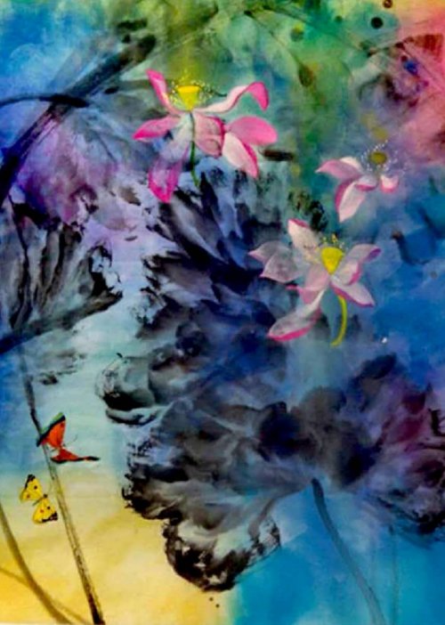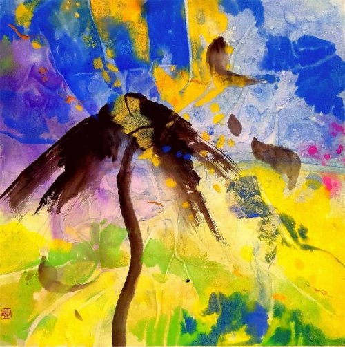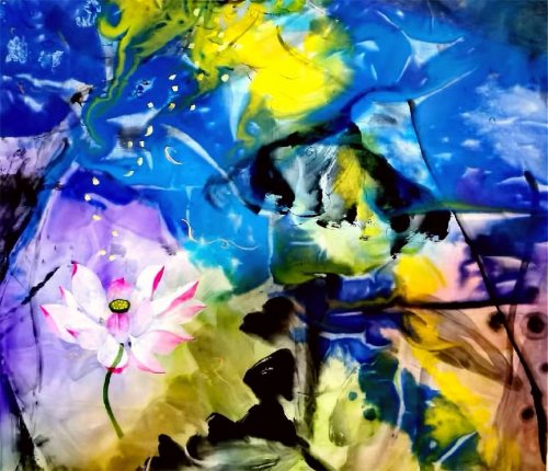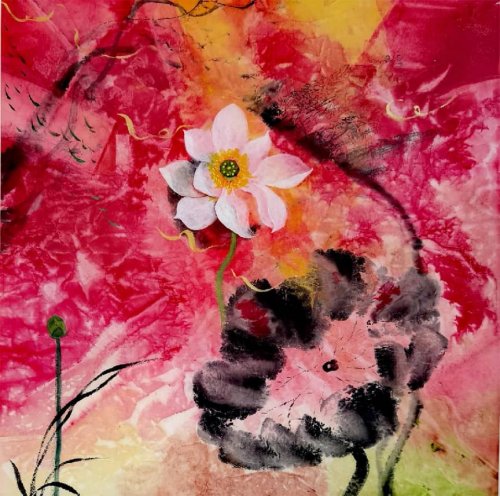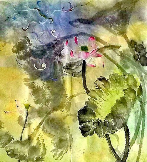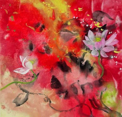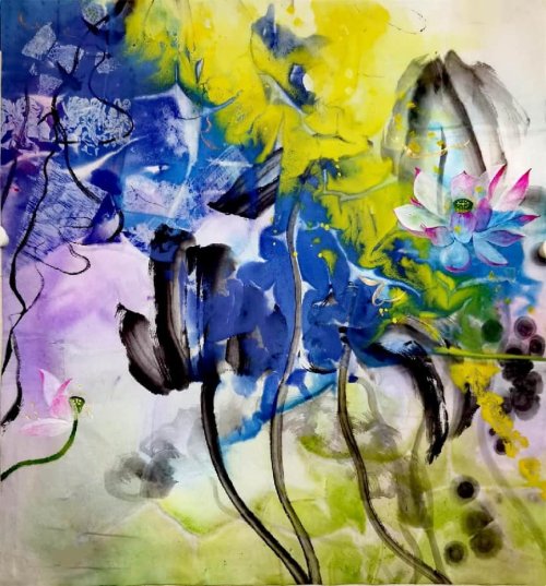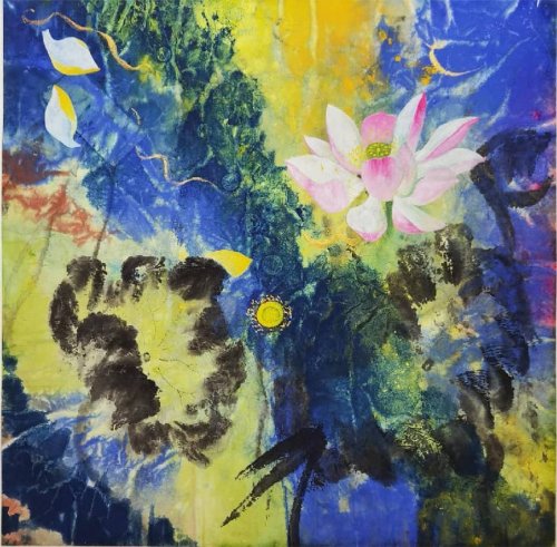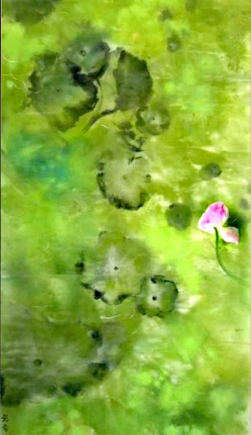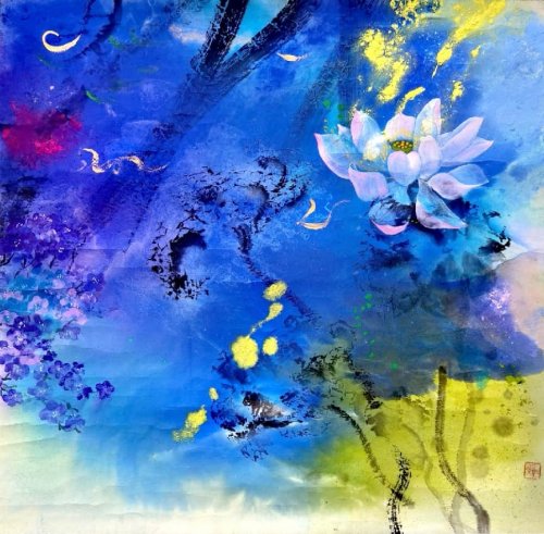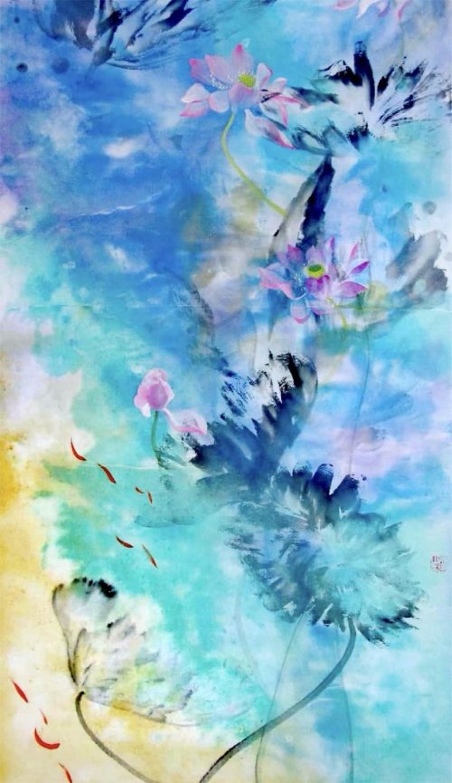 荷塘韵事 石齐老师评彭琦的画 彭琦的荷花有她的鬼主意,有自己的花招。鬼主意多,花招也很多。在泼墨,泼色的处理上她把握的很好,干湿浓淡,色彩搭配很协调。她玩命一样画她的色彩,而且是东方的色彩,这很好。彭琦的写意画都是很注意"S"形,很温柔,很讲情趣。弯弯的荷叶枝干,很有诗意,像一个短篇小说,像一个特写。 画面中很多很多工细的线,增加了欣赏的深度,弱线,飘线,硬线搭配都非常好,很有看头,还有很多像音乐一样的线。作为一个艺术家,要自信,要有自己的语言,有自己的新建,彭琦就做到了。她所有作品,一眼便知是彭琦。我平时总说一个画家要点亮自家灯火,彭琦便是点了自家灯火的。 石齐 2023年3月10日 (中央电视台10频道采访石齐老师评画)