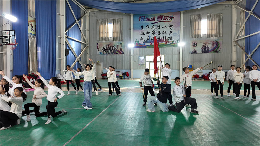 为不负重托,学校精心选拔30名学生演员,启动为期三个月的集中排练。此次筹备工作得到了中国文化信息协会艺术特长生新疆办公室的大力支持,新疆艺术特长生办公室主任班园全程深度参与,不仅为节目的前期筹备提供了专业策划,更在资源协调、艺术指导等方面给予切实帮助,从最初的主题立意、节目形式设计到细节呈现打磨,进行了全方位、系统化指导,为节目艺术水准的提升提供了有力保障。学期中段的学业压力与高强度的排练任务叠加,成为孩子们面临的首要挑战。