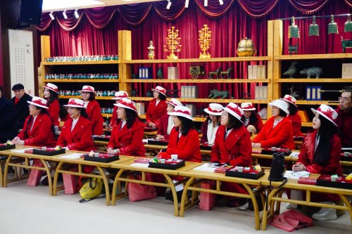九典书房主理人罗勇先生在发言中说,文化是美学的根基,美学是文化的当代表达。书房始终致力于构建一个可感知可体验的美学场域,让传统文化在现代生活中焕发新生。 雅集的核心,将“踏雪寻梅”这一经典文化意象,系统转化为可感知、可参与、可传承的生活美学实践。活动现场,嘉宾统一身着设计师锦心精心设计的红白主题新中式华服,沉浸于诗乐共融、非遗手作、梅花茶席营造的诗意空间。这一视觉统一的背后,是读书会会员共同创意的“花神”文化共建共育模式。八位会员化身“花神”,不仅负责主题服装的协调与现场风仪呈现,更深度参与了流程设计、手作指导等环节,体现了“人人参与、共建共享”的社群文化活力。