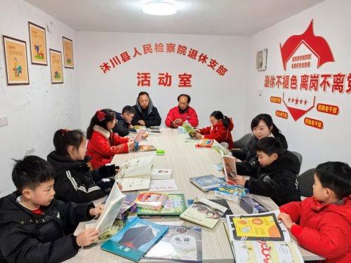 2月2日,沐川县关工委联合县检察院院关工委开展“阅读成就梦想·书香点亮未来”青少年寒假读书活动。 2日上午10时许,县关工委执行主任李正银同县检察院常务副检察长、关工委主任唐田,县检察院关工委执行主任朱维富,县检察院政治部主任、机关党委书记、关工委办公室主任刘芳,县检察院政治部副主任、机关党委副书记、关工委办公室副主任唐培倚与20人“五老”和青少年在“五老”工作室室举行乐山市关心下一代基金会沐川县检察院“五老”工作室捐书仪式。
