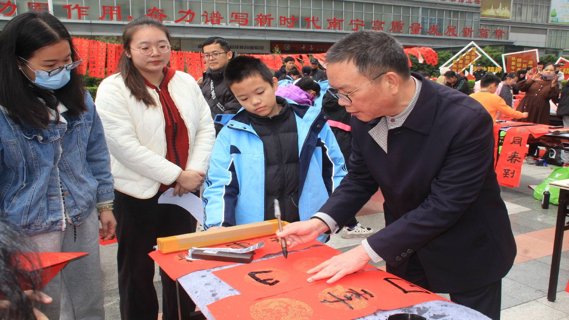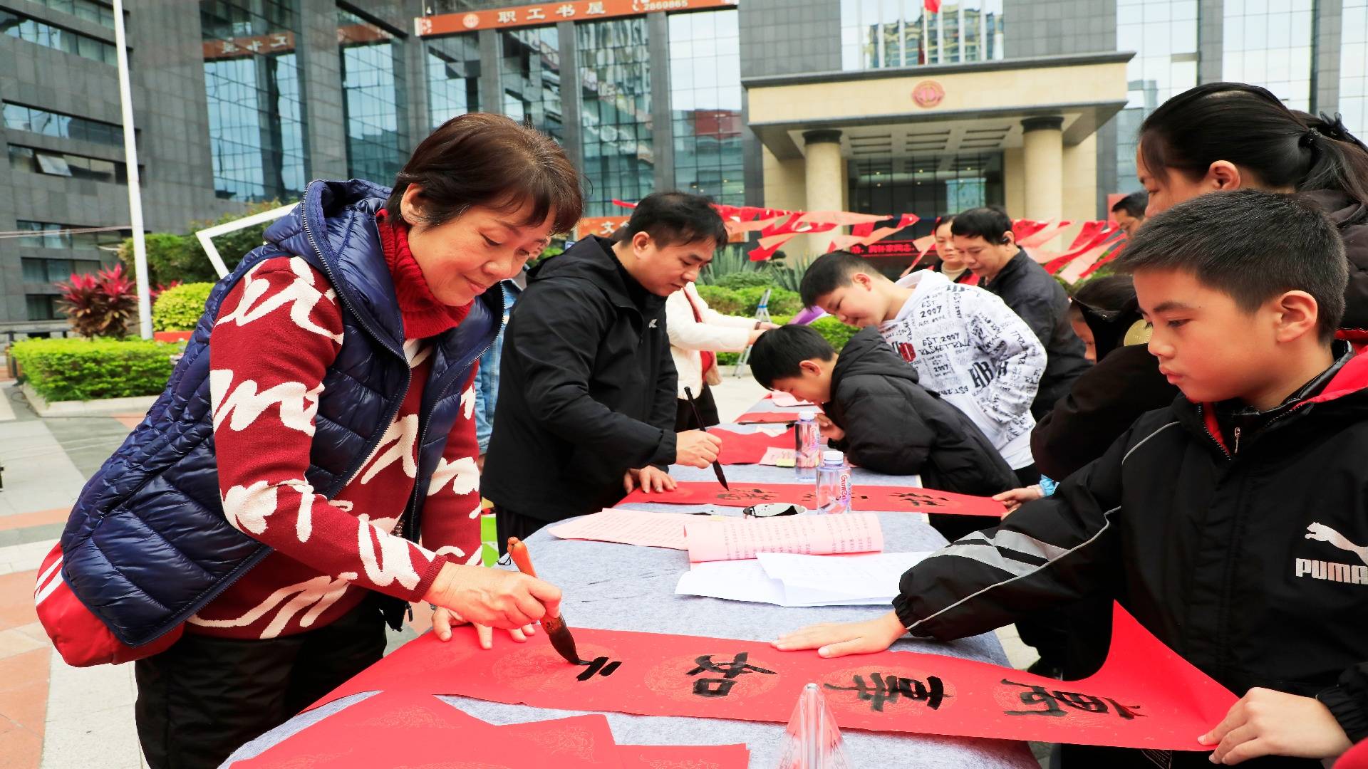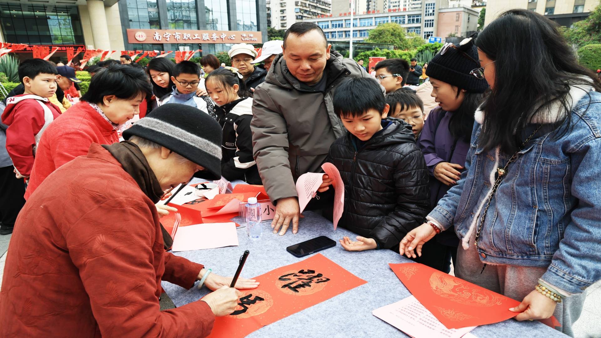 品牌聚力:文化惠民成常态 共绘邕城新画卷 作为南宁市总工会与市文联联手打造的“文化招牌”,“送万福 进万家”暨“我家春联我书写”活动已连续开展九年,成为迎新春节前夕职工群众翘首以盼的文化盛宴。活动不仅满足了市民贴手写春联的传统民俗需求,更将书法国粹深度融入节日氛围,以“文化年货”滋养精神生活,是“文化为民、惠民、乐民”宗旨的生动注脚。