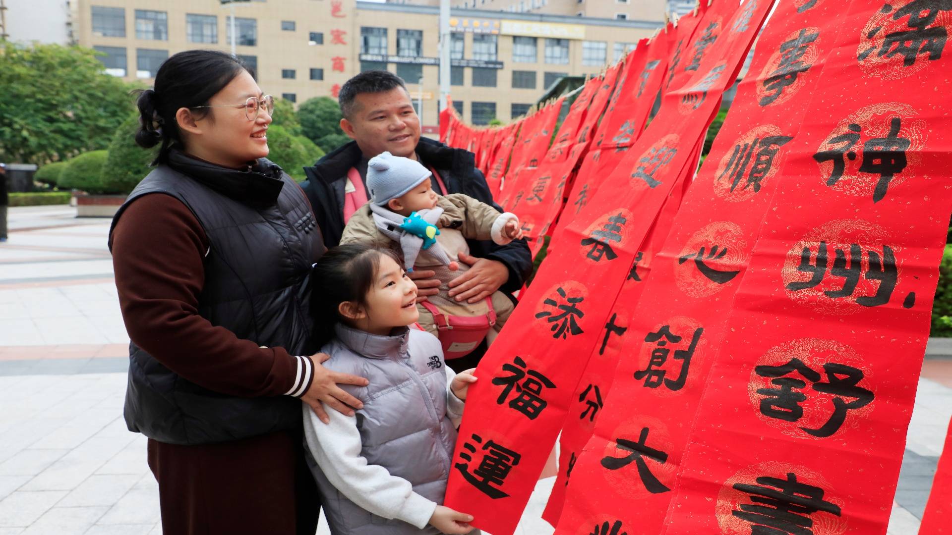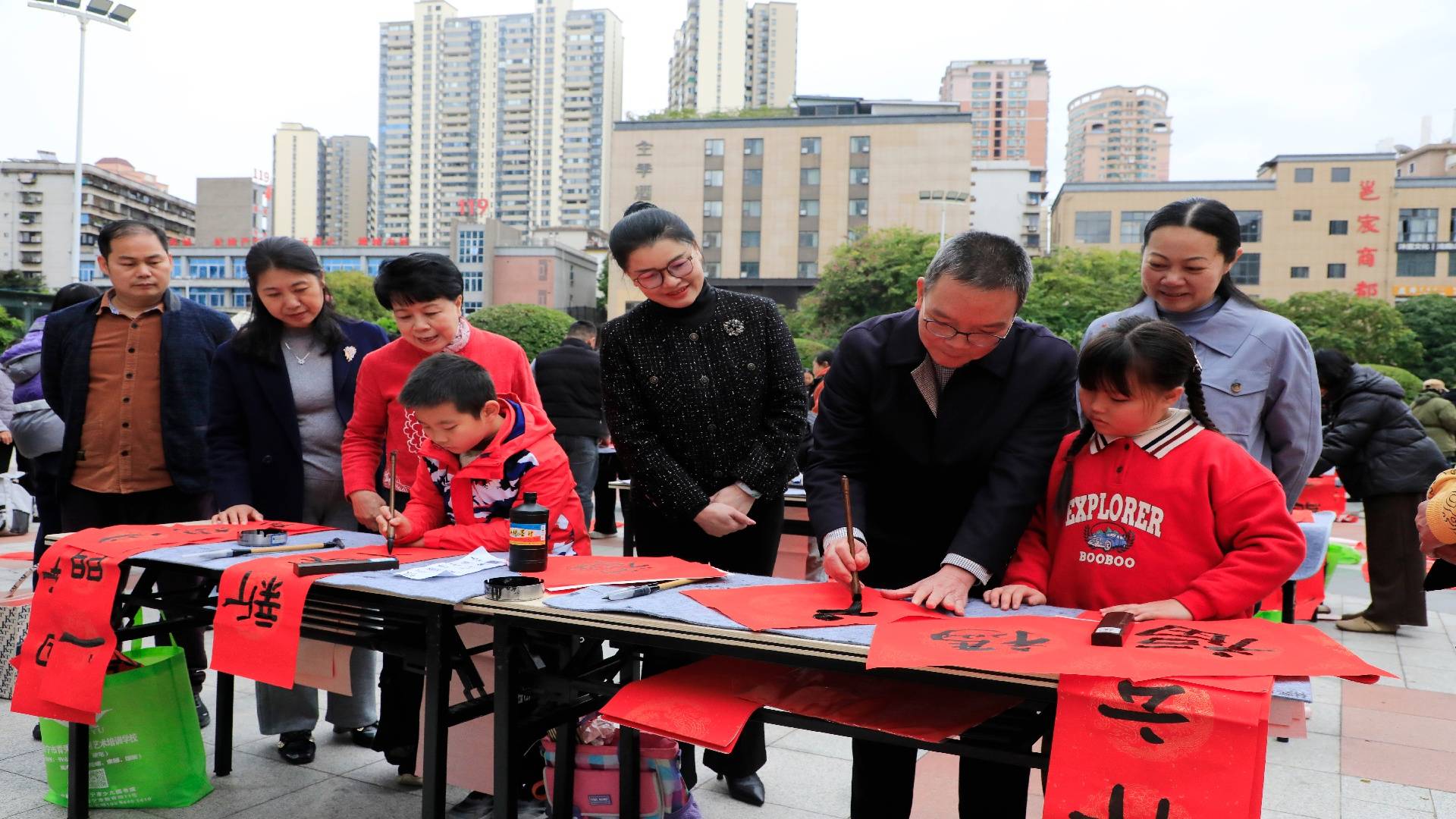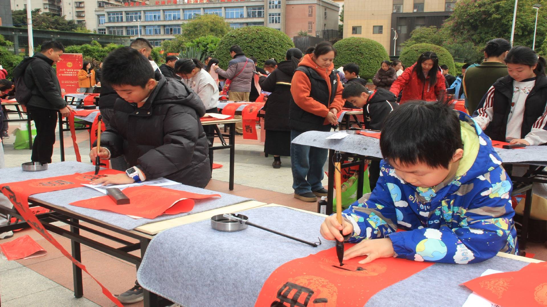 笔墨传情:老少同书承文脉 童心浸润育新苗 活动现场,南宁市的书法家神情专注,笔走龙蛇间,“春满人间歌盛世,福临门第喜团圆”“马跃康庄开泰运,福盈黎庶展宏图”等马年主题春联跃然纸上;近百名小学员虽笔触稚嫩,却一笔一画认真书写,在“福”字中融入童真想象,引得围观市民纷纷点赞。