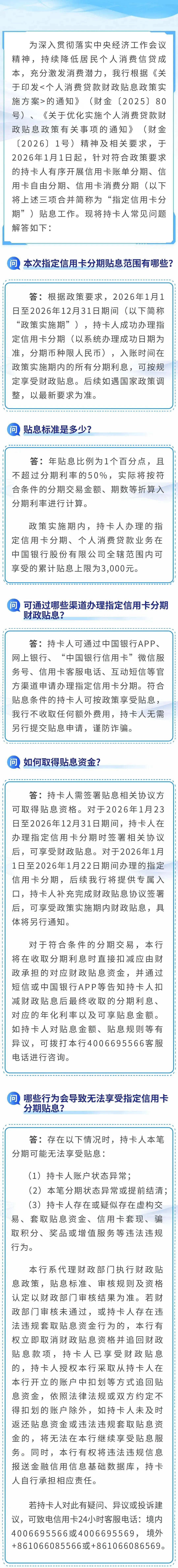 中行泰安分行:中国银行指定信用卡分期财政贴息工作常见问题